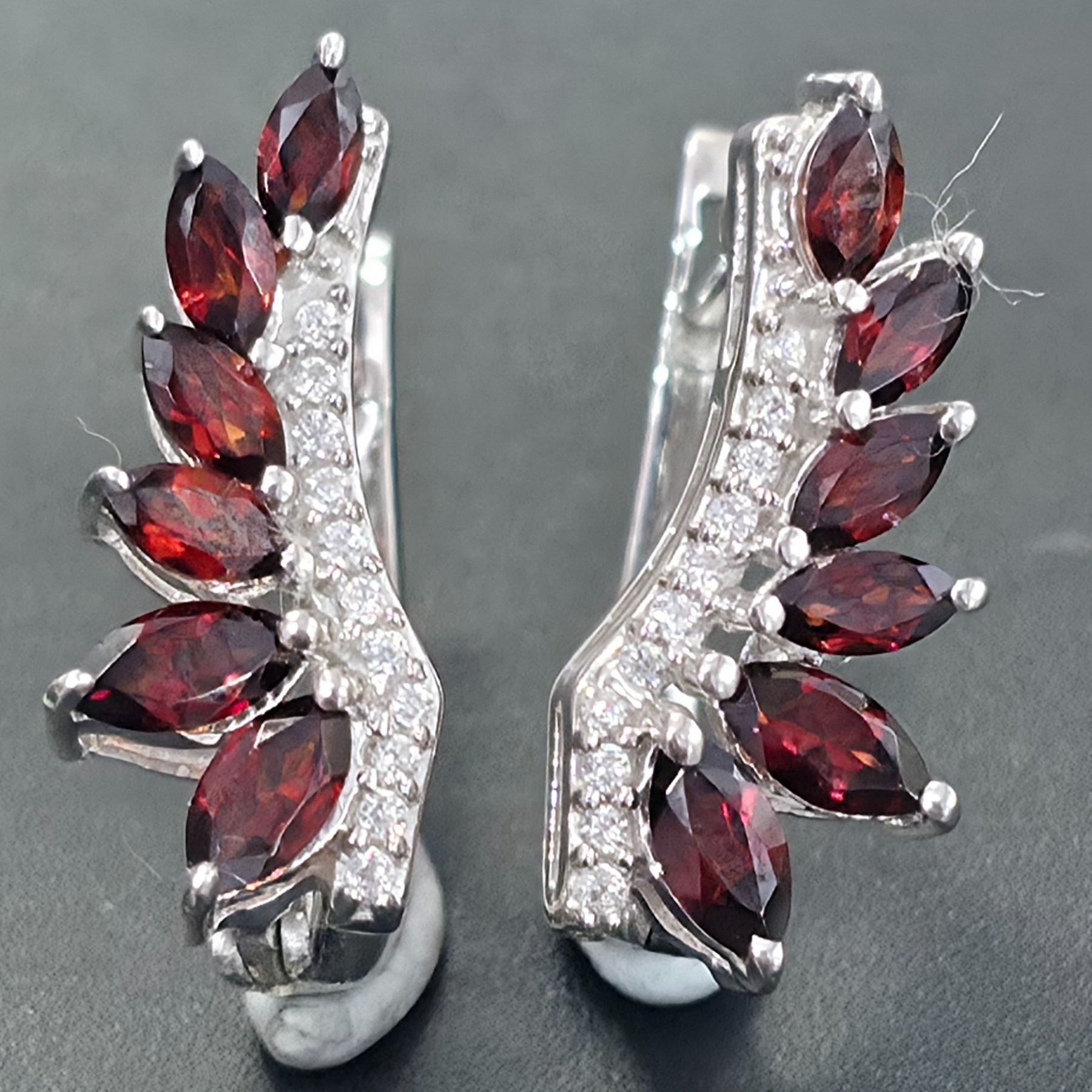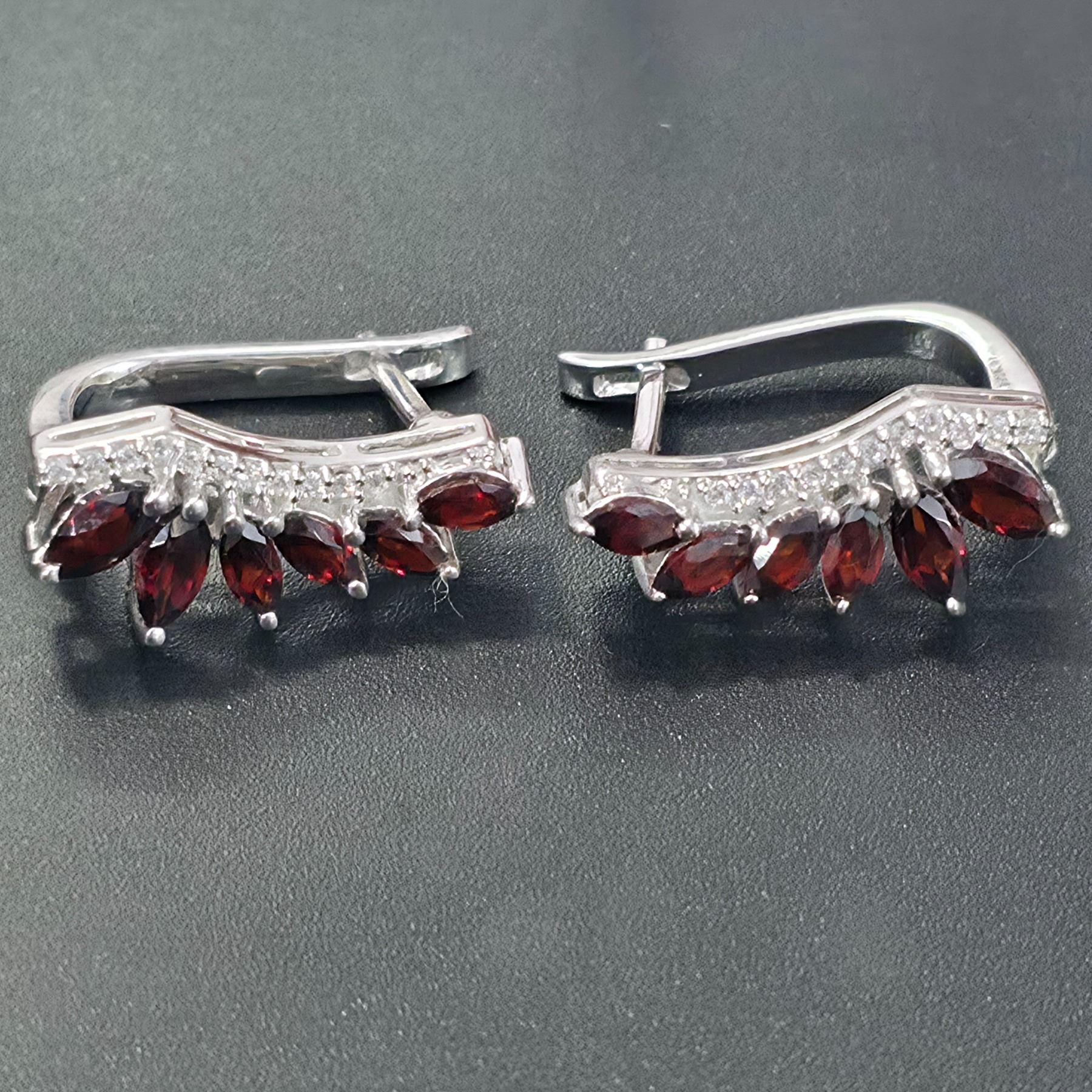 SILVER GARNET(2.3CT) RHODIUM PLATED EARRINGS