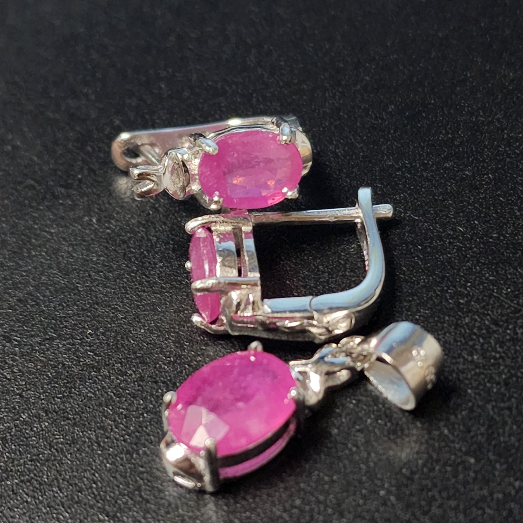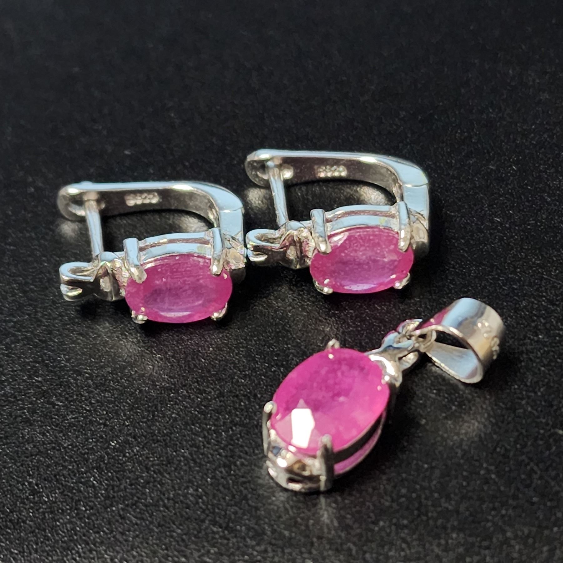 SILVER GENUINE RUBY PENDANT, EARRING(APP 3CT) SET
