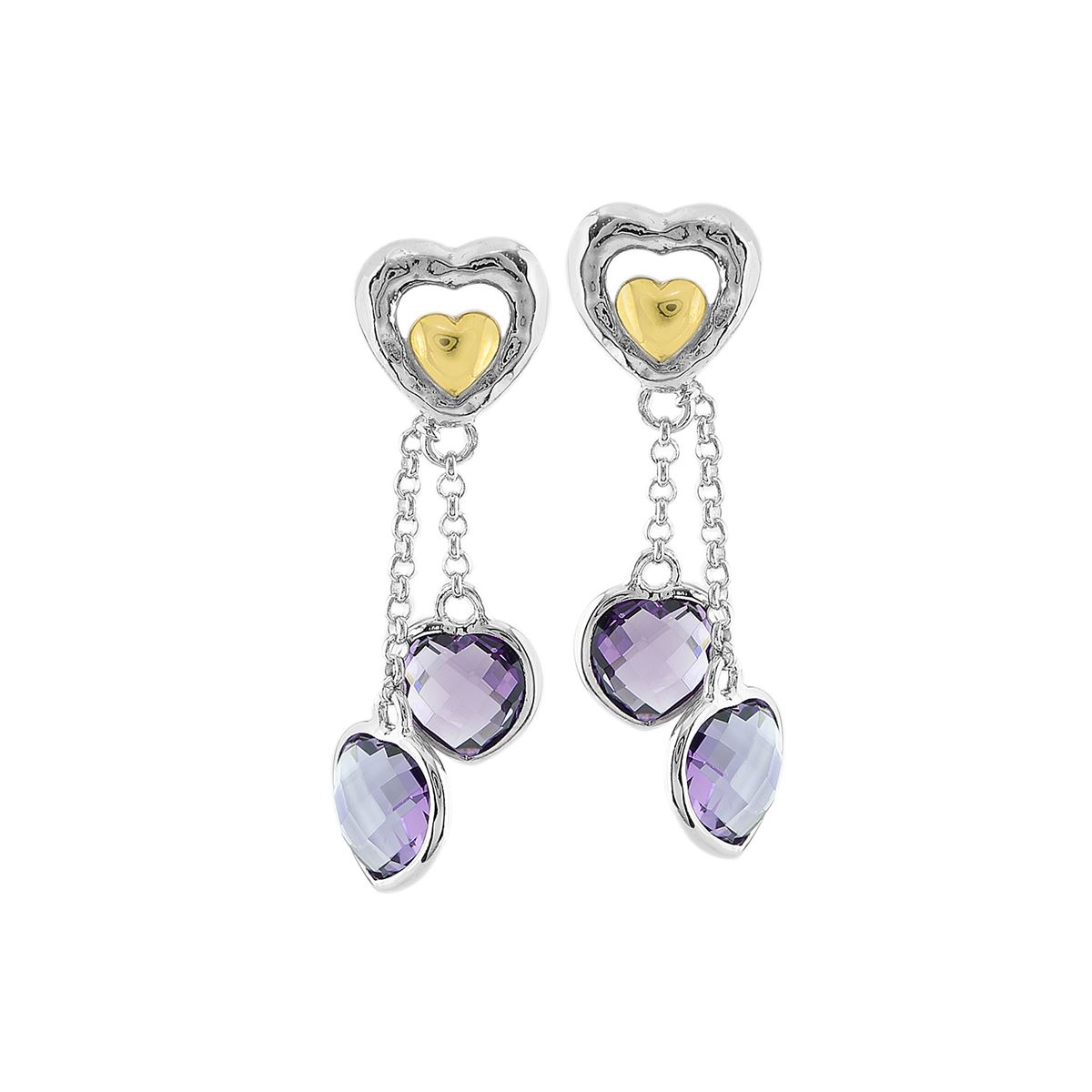 SILVER/GOLD AMETHYST WIRE WRAPPED EARRINGS (#6435A) TOTAL CT WEIGHT 6.2