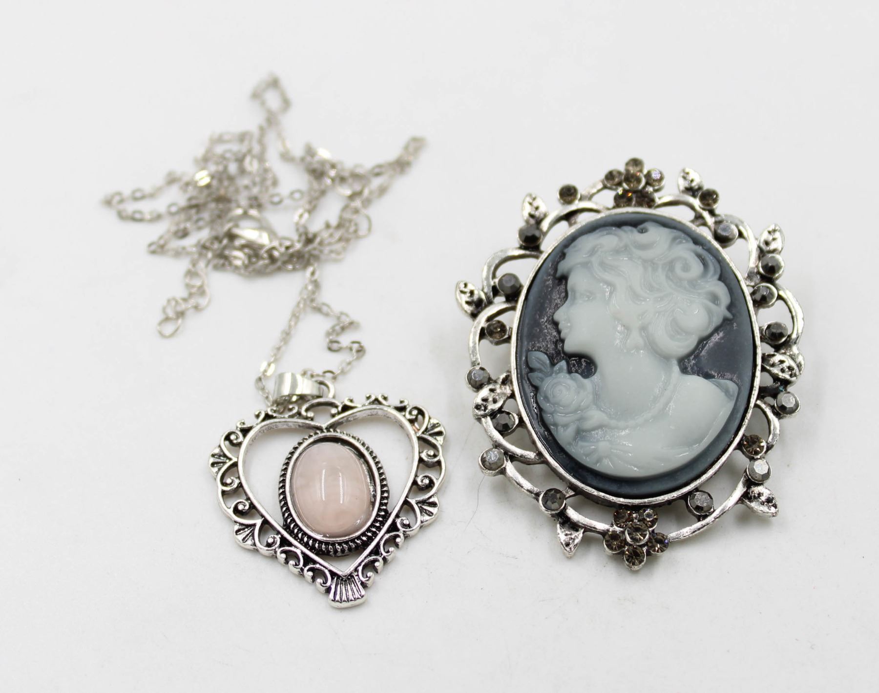& BLUE/WHITE CAMEO BROOCH IN ZIRCONIUM