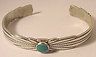 SILVER HEAVY CUFF BRACELET GREEN CULTURED TURQUOISE STONE VINTAGE 1960?S