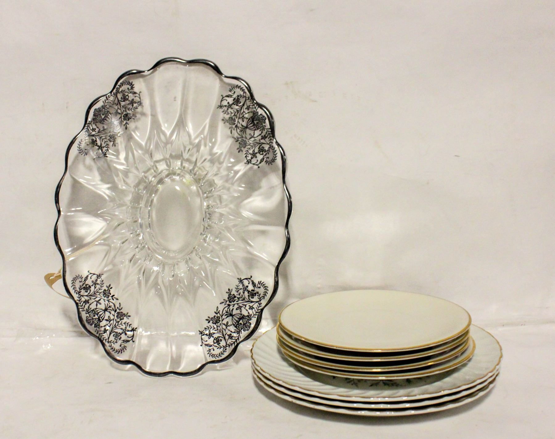 SILVER INLAID GLASS SERVING TRAY SOLD WITH GOLD