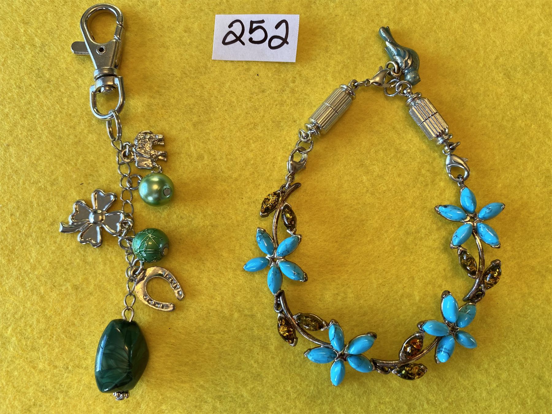 SILVER JEWELRY - BRACELET & CHARMS WITH BLUE & GREEN STONES