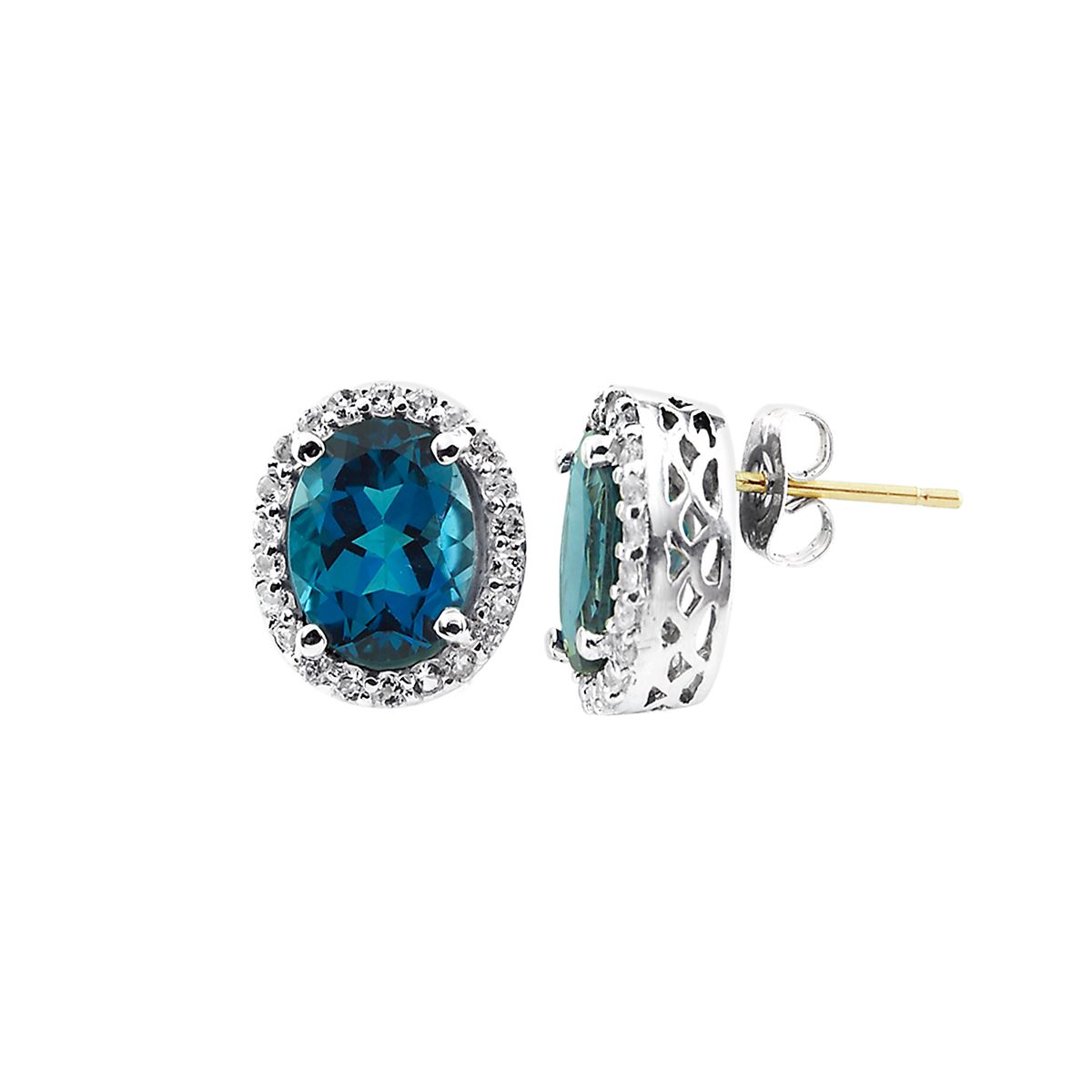 SILVER LONDON BLUE TOPAZ / WHITE TOPAZ EARRINGS (#8389LDN) TOTAL CT WEIGHT 4.222