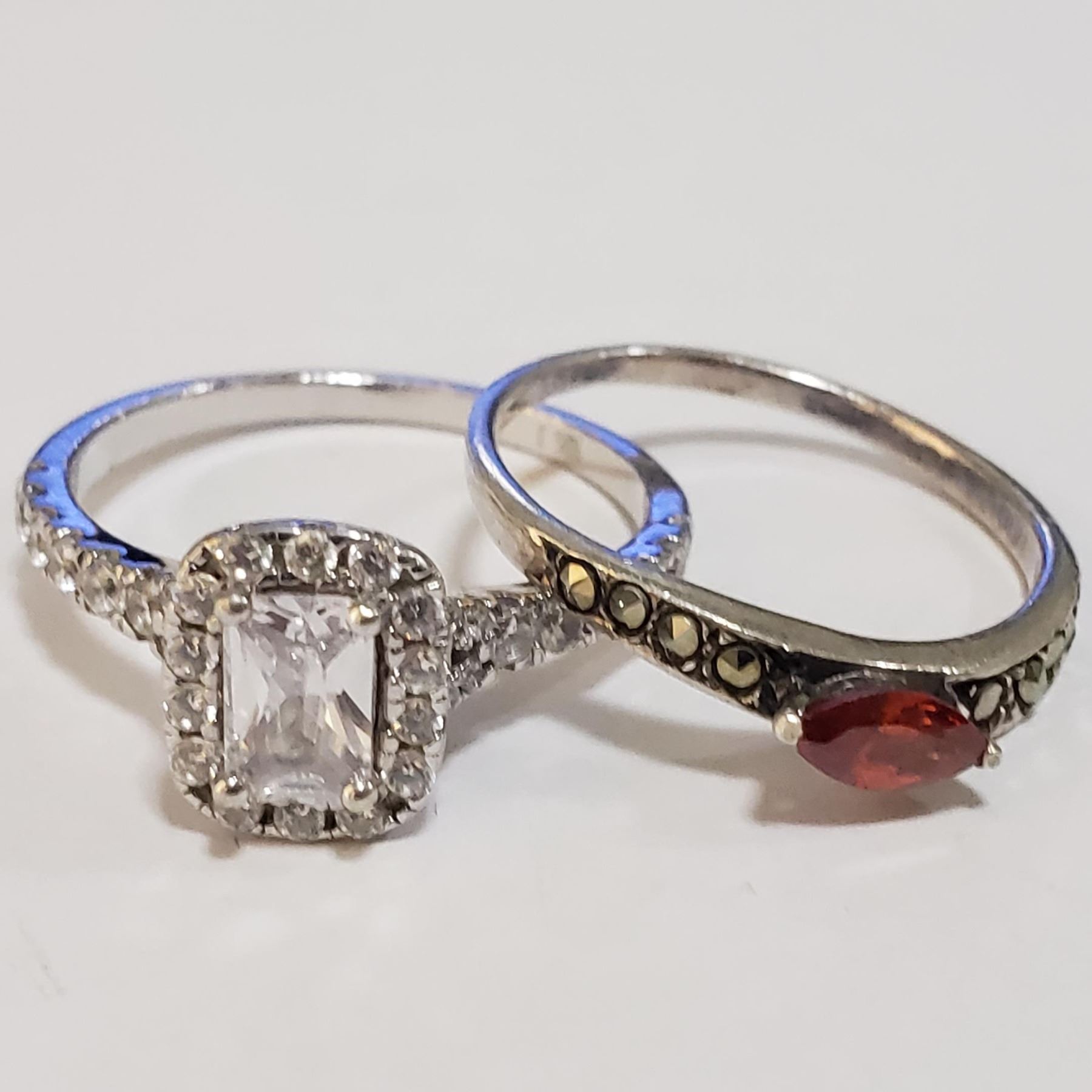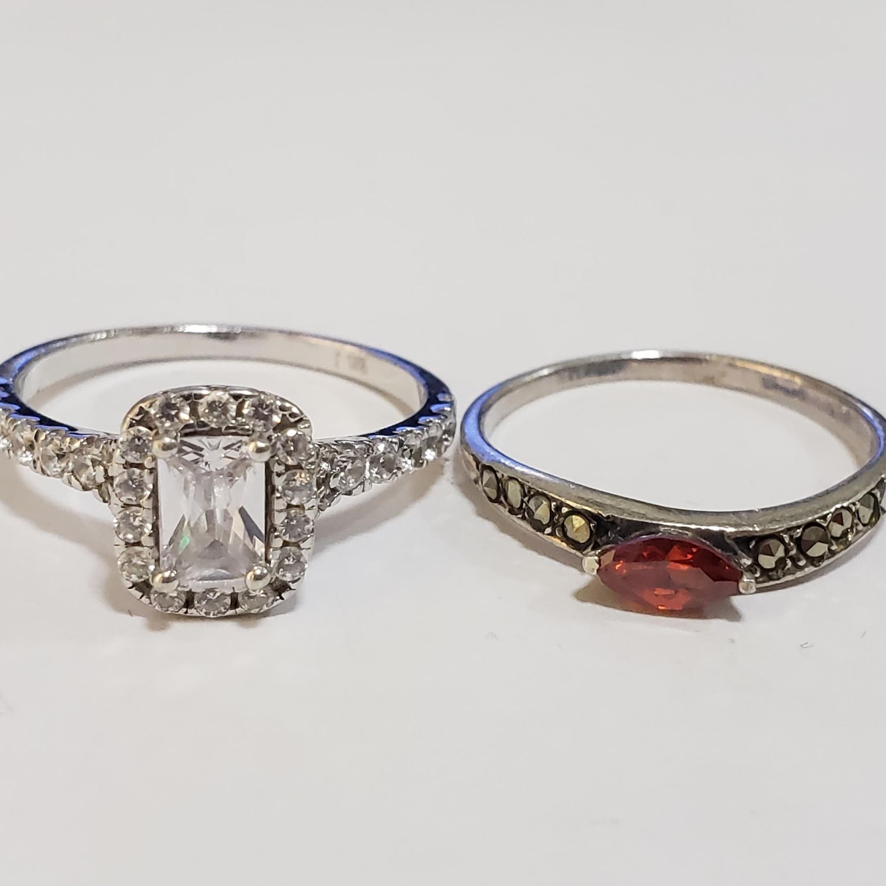 SILVER LOT OF2 GARNET MARCASITE RING(WEIGHT 4.05G)