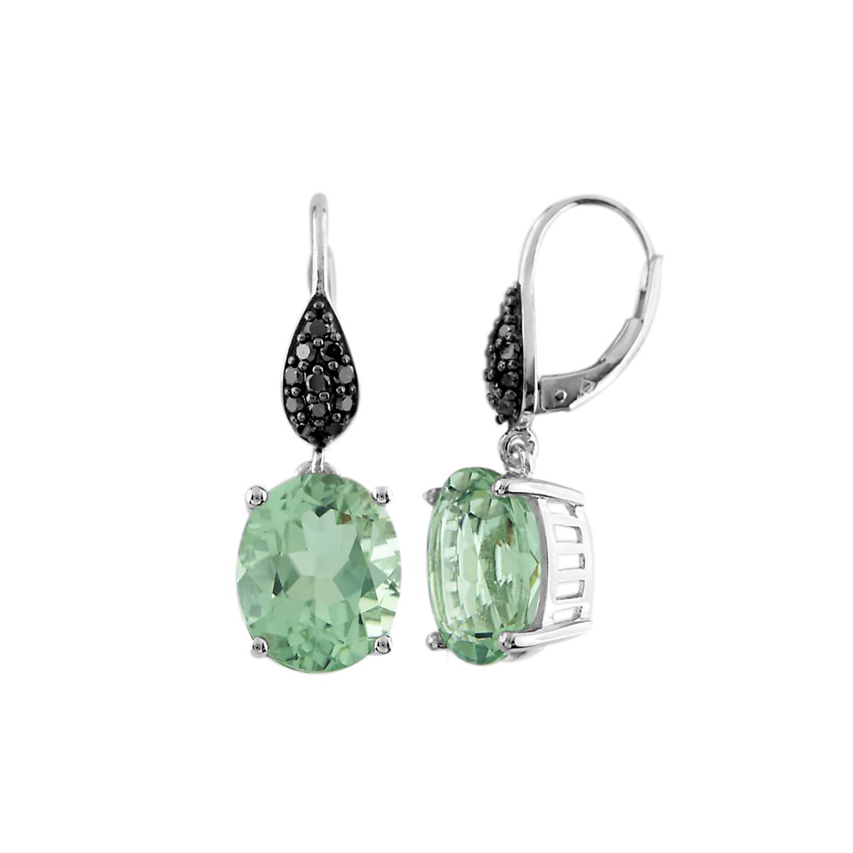 SILVER MINTGREEN QUARTZ / BLACK DIA LEVERBACK EARRINGS (#8608MGQD-BLK) TOTAL CT WEIGHT 7.6