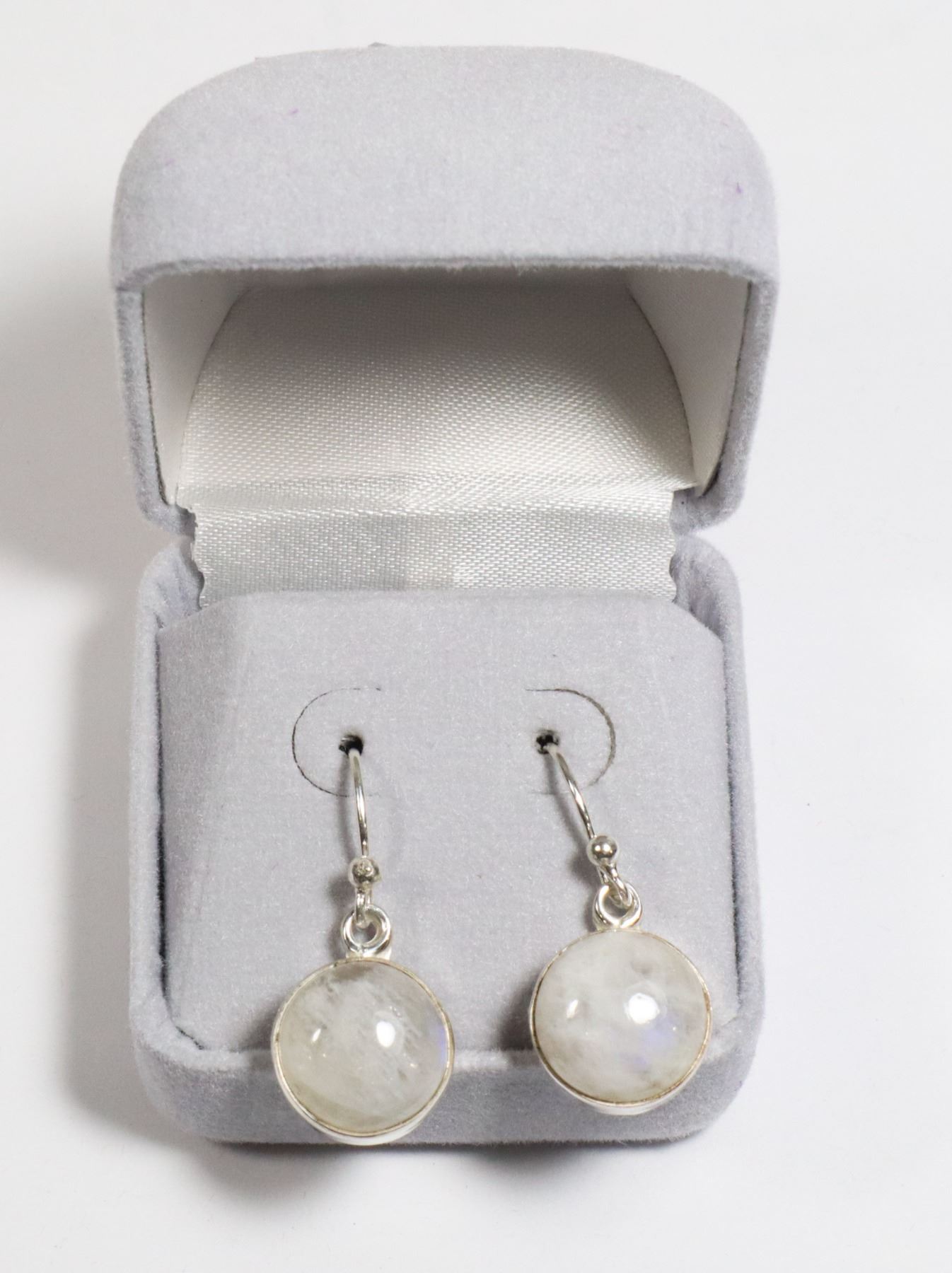 SILVER MOONSTONE EARRINGS, WEIGHT 4.49G