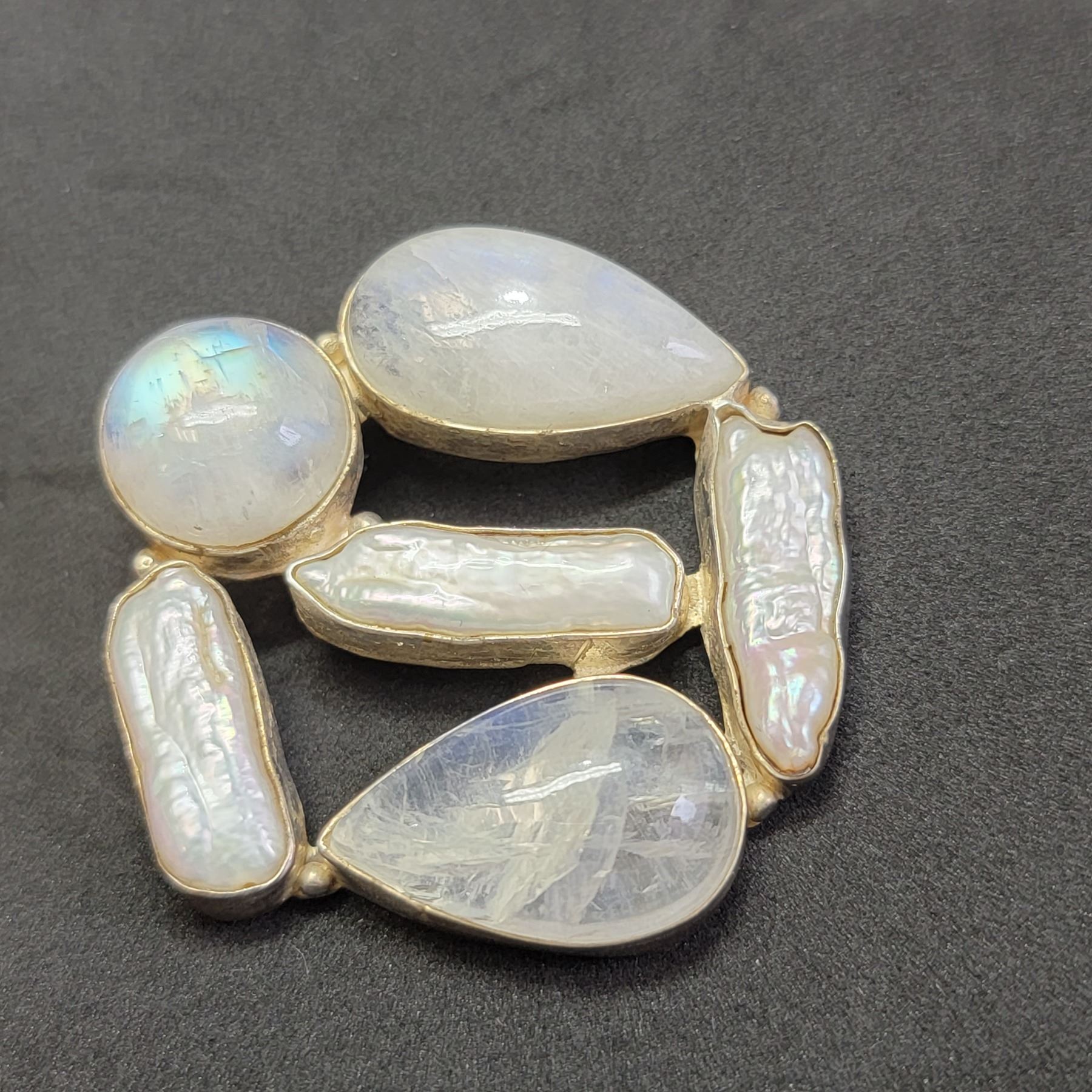 SILVER MOONSTONE WITH PEARLS PENDANT