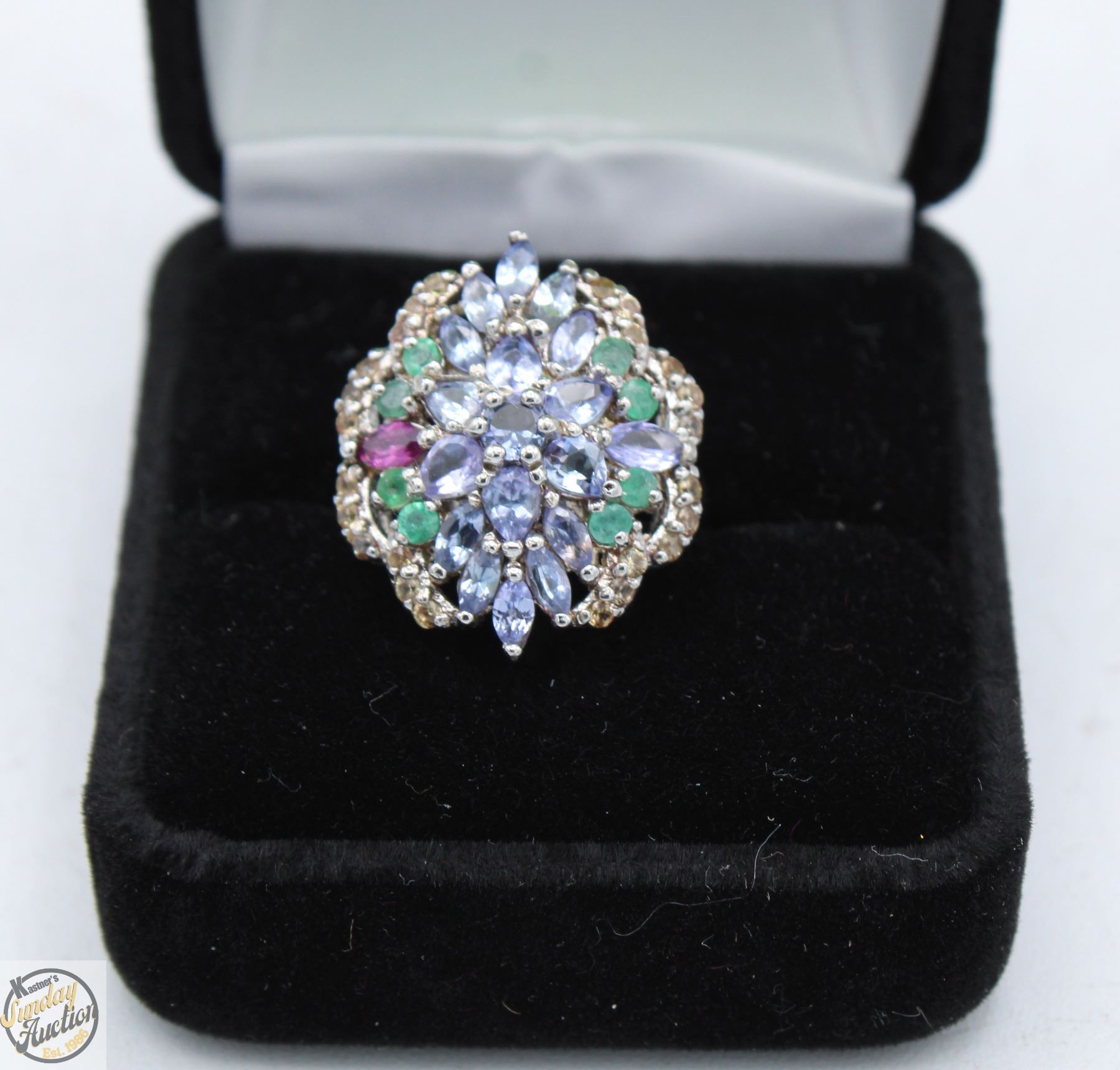 SILVER MULTI GEMSTONE RING SZ 8