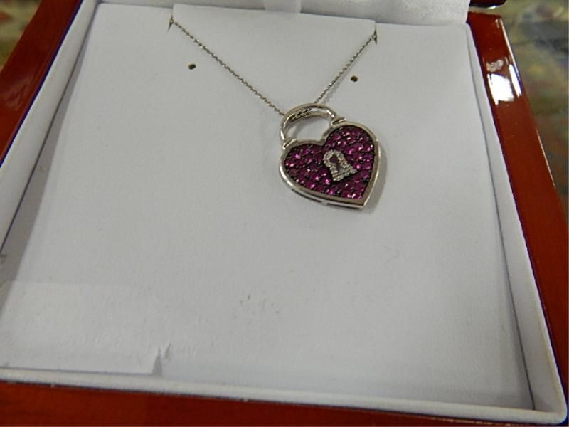 SILVER NECKLACE - HEART LOCK - WITH 11 DIAMONDS & 41 PINK CRYSTALS - .925 SILVER - MADE IN ITALY - INCLUDES CERTIFICATE $615