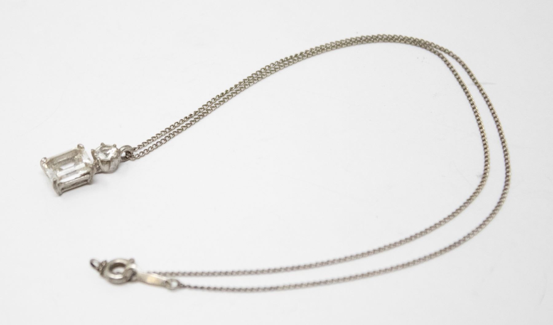 SILVER NECKLACE WITH CLEAR STONE PENDANTS