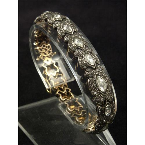 BRACELET: Exotic silver on gold Mughul bracelet set with rosecut round and marquise cut diamonds. Appraisal included.