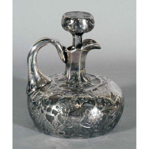 SILVER OVERLAY CLARET BOTTLE 7 1/2" high, wit
