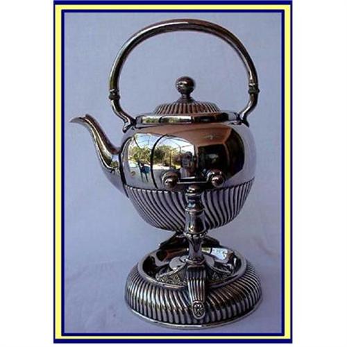 <tr><td>Title:SILVER P TEA KETTLE ON STAND W BURNER 19C</td></tr>