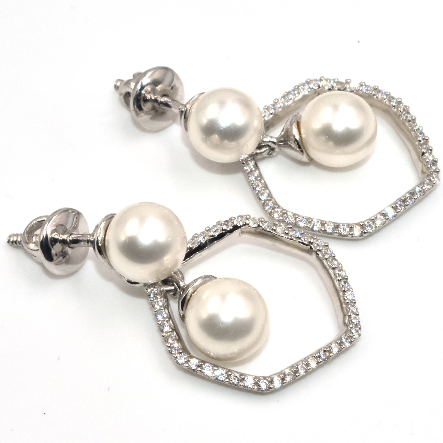SILVER PEARL CZ(8.75CT) RHODIUM PLATED EARRINGS