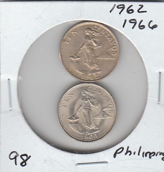 SILVER PHILIPPINES SILVER 1962 AND 1966 CENTAVOS