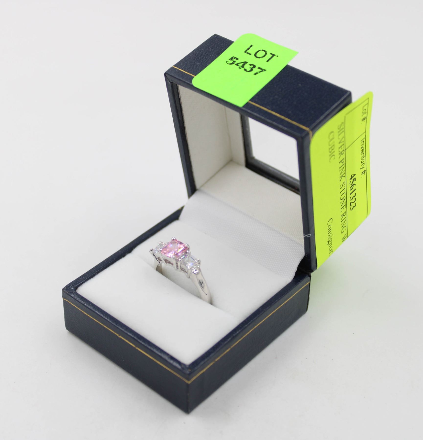 SILVER PINK STONE RING WITH CUBIC