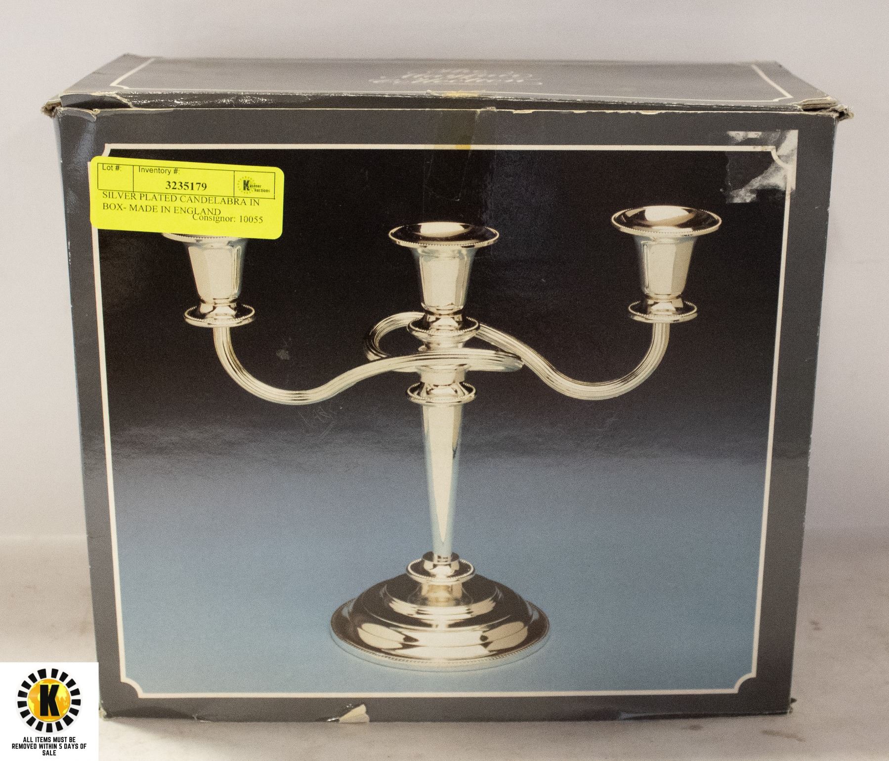 SILVER PLATED CANDELABRA IN BOX- MADE IN ENGLAND