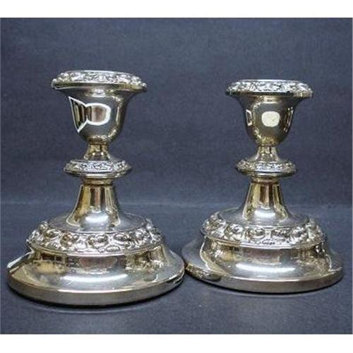 BEAUTIFUL PAIR OF CANDLE HOLDERS, LOVELY DESIGN, MADE IN ENGLAND, REMOVABLE TOPS, THESE ARE SILVER PLATED - EXCELLENT CONDITION - EXCELLENT QUALITY - EACH MEASURES ABOUT 4 1/2" HIGH, BASE MEASURES ABOUT 4" IN DIAM., US BUYER TO PAY 8.00 FOR SHIPPING PLUS INSURANCE.THANKS.
