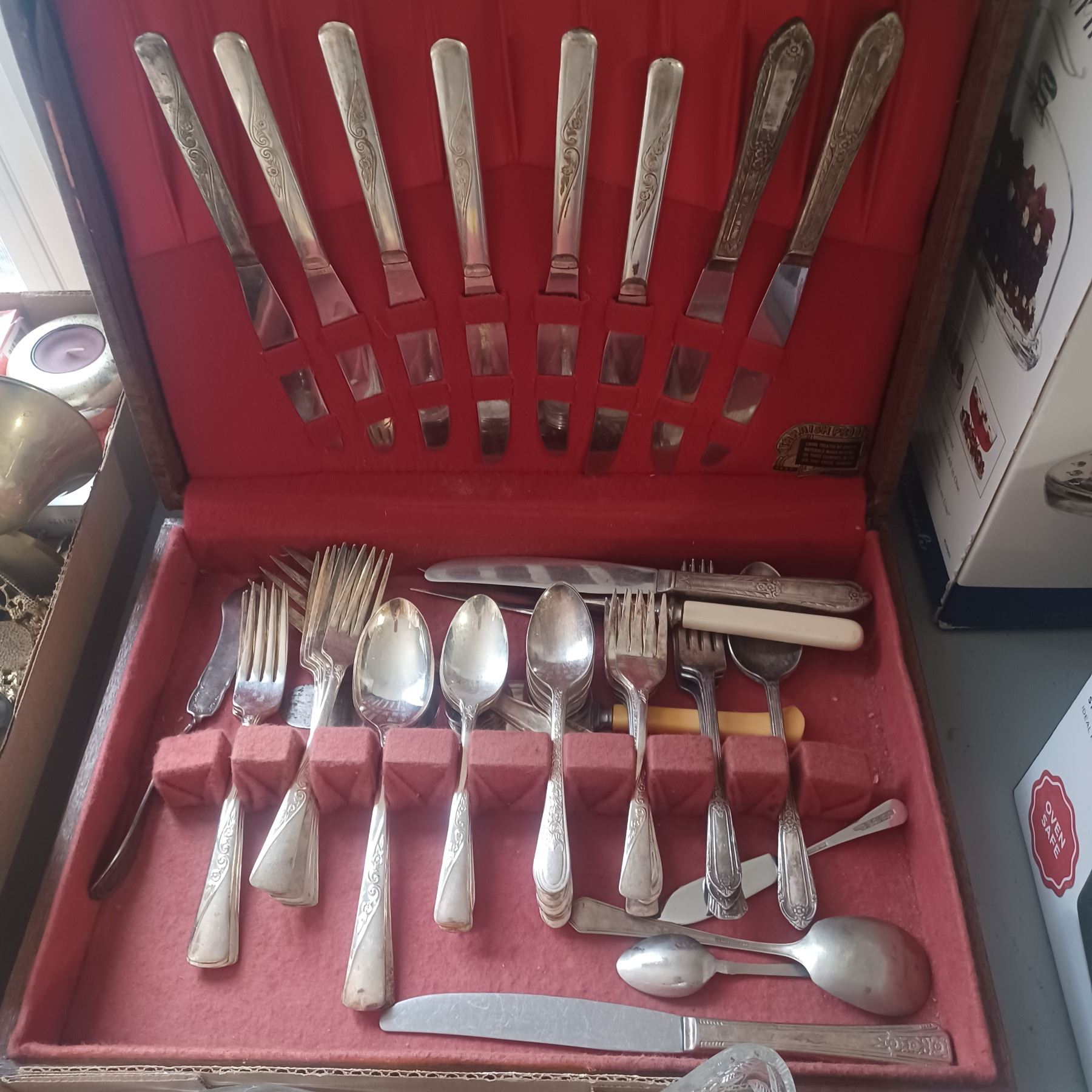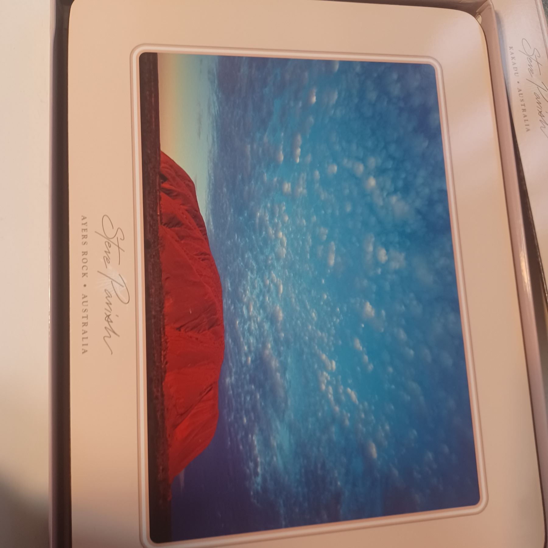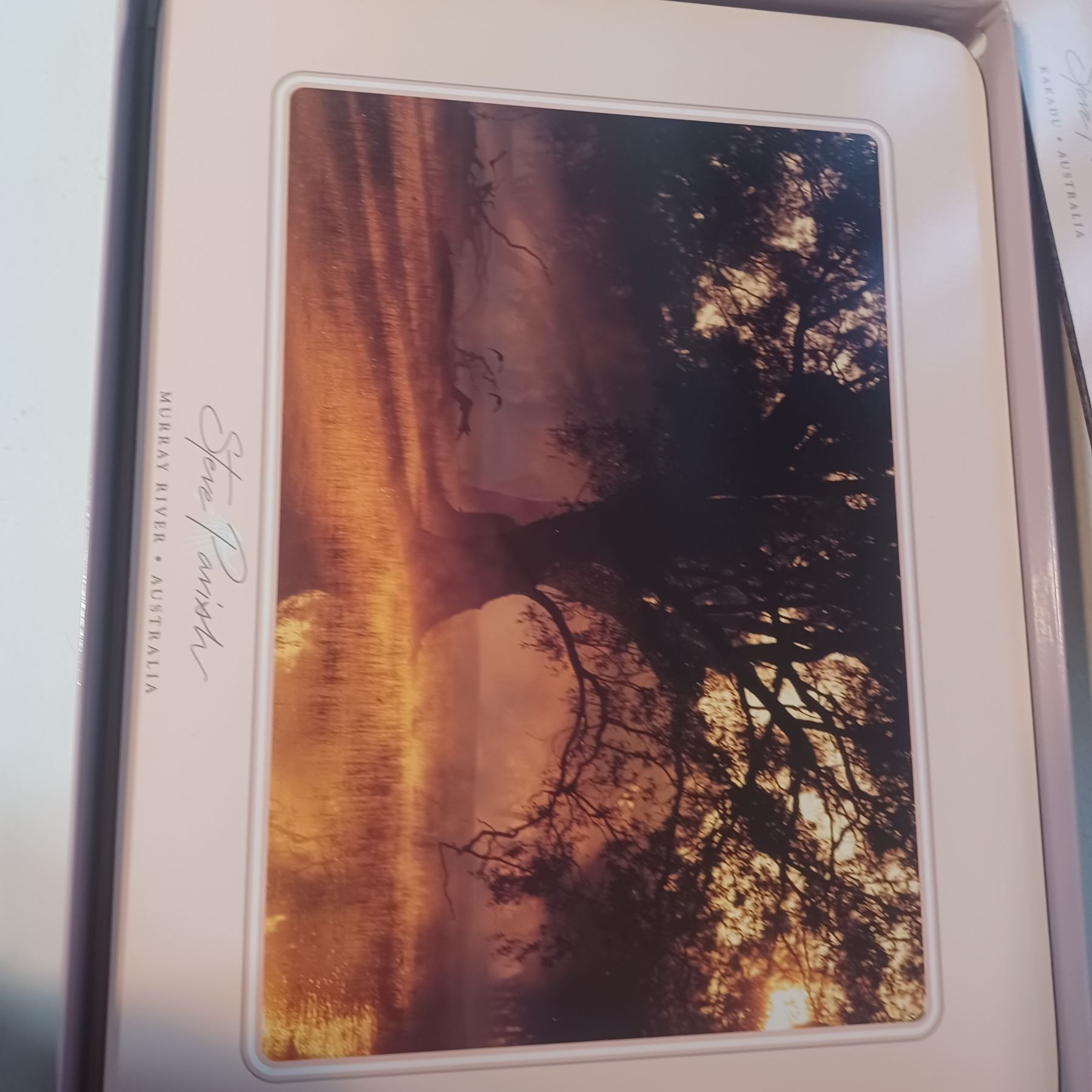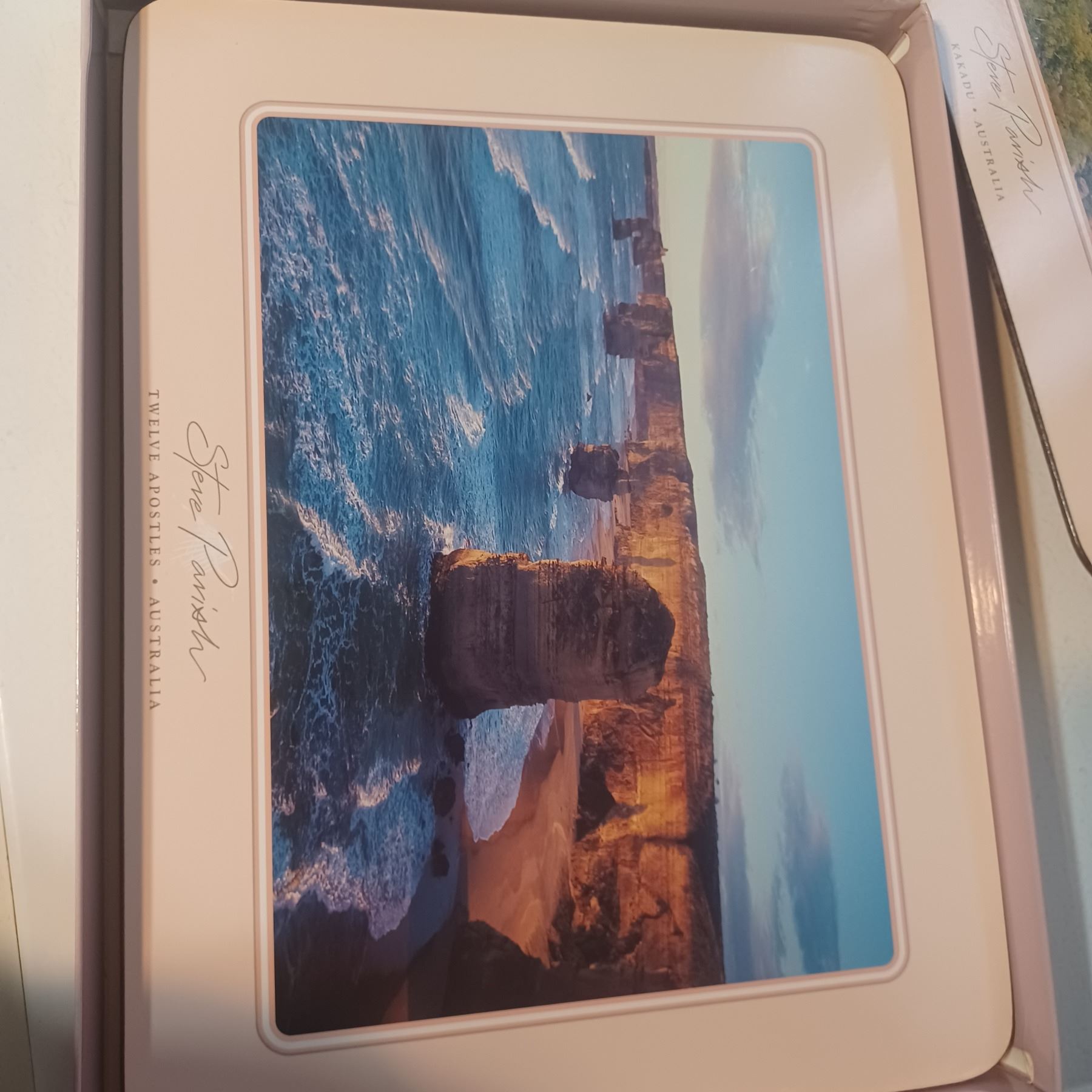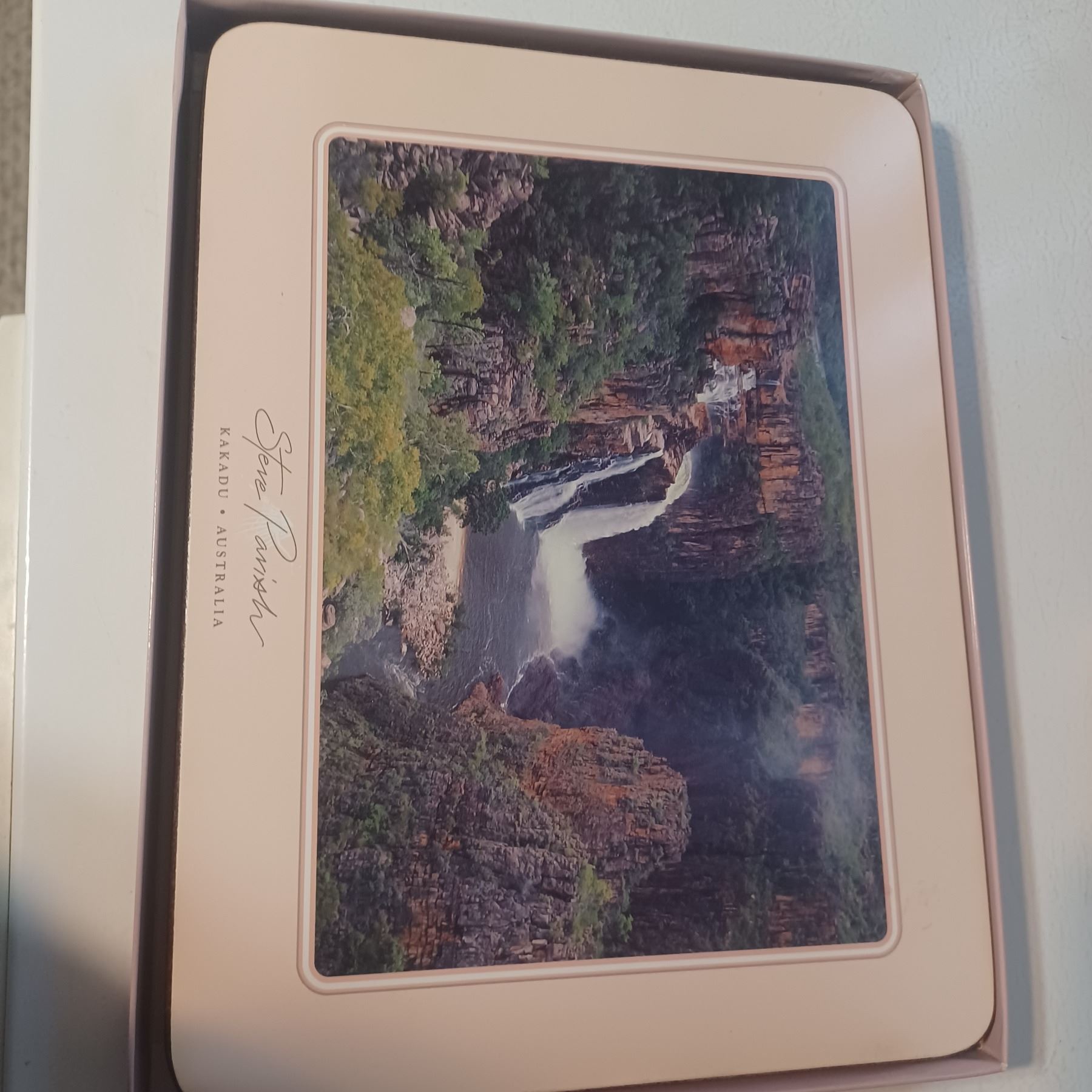 SILVER PLATED COASTER SET, 6 STEVE PARISH PLACEMATS AND CUTTLERY SET IN BOX