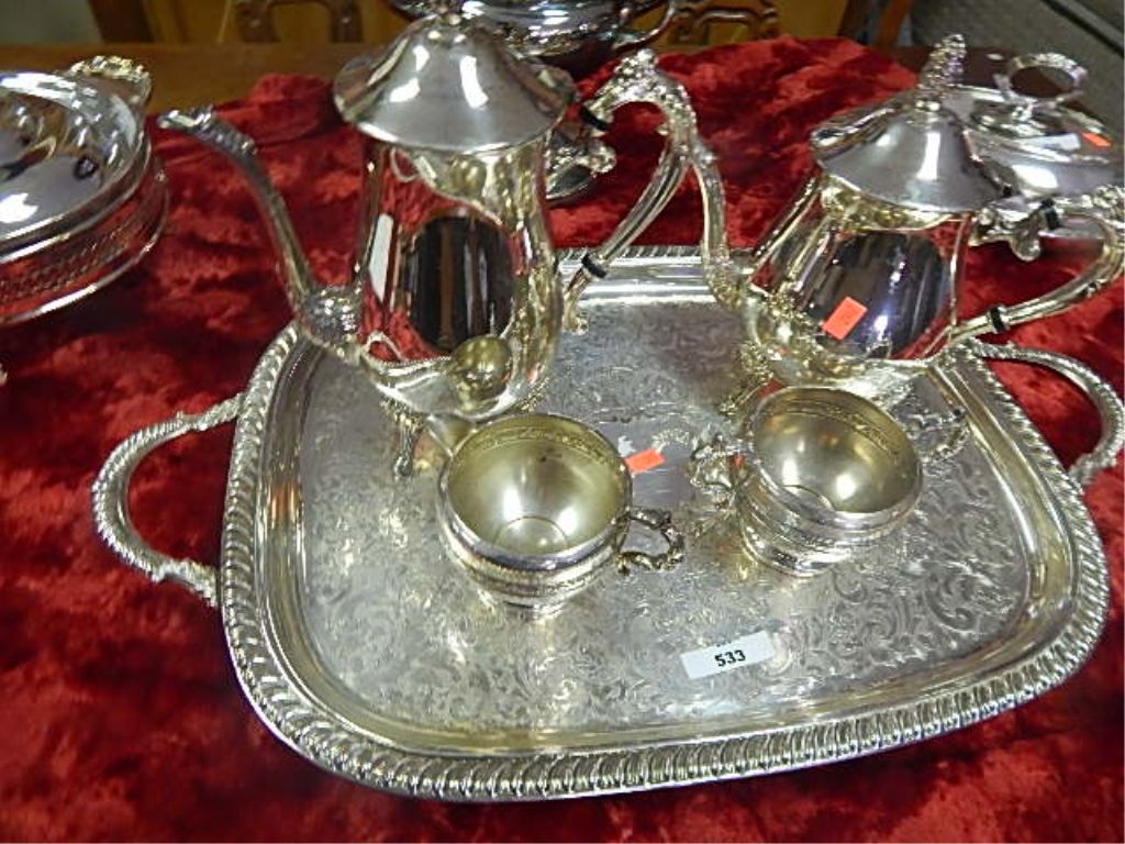 SILVER PLATED COFFEE, TEA SET - 5 PC TOTAL