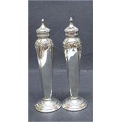 BEAUTIFUL PAIR OF TALL PEPPER AND SALT SHAKERS , LOVELY DECO DESIGN, THESE ARE SILVER PLATED - AND IN VERY FINE CONDITION - as per images - EACH MEASURES ABOUT 6 1/2" HIGH, US BUYER TO PAY 8.00 FOR SHIPPING PLUS INSURANCE.THANKS.
