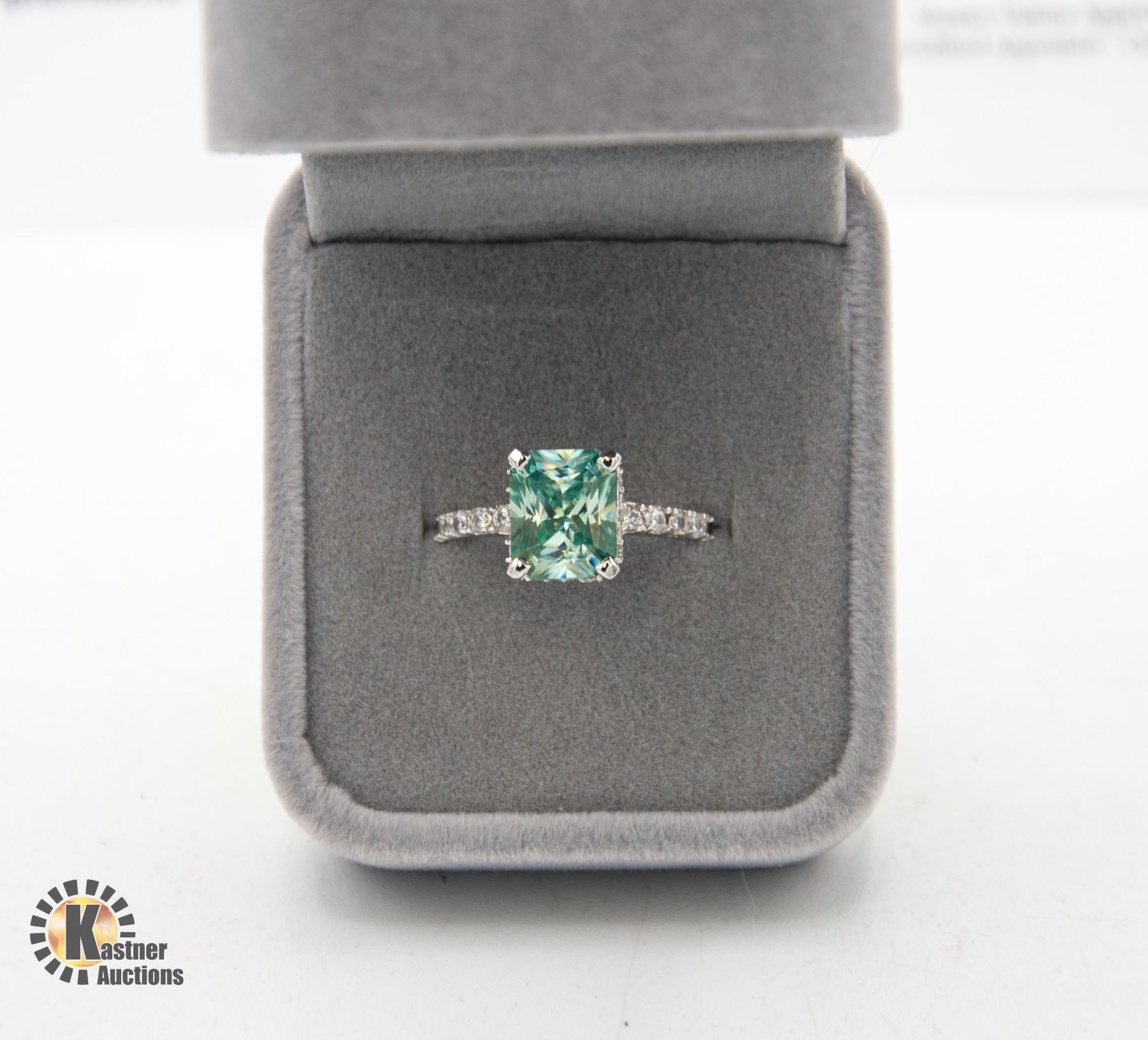 INTENSE BLUE MOISSANITE WEIGHING APPROXIMATELY 3.75 CARATS WITH 40 CUBIC ZIRCONIUM APPROXIMATE TOTAL WEIGHT OF 0.80 CARAT RING SIZE 7 APPRAISED VALUE $2,710.00 **ALL ITEMS MUST BE REMOVED BY 5PM SATURDAY, JANUARY 6TH 2023. ALL REMAINING ITEMS WILL BE SUBJECT TO A $6.00 PER DAY STORAGE CHARGE. ANY ITEMS REMAINING AFTER MONDAY, JANUARY 22ND, 2023 WILL BE CONSIDERED FORFEITED. NO REFUNDS WILL BE ISSUED FOR FORFEITED ITEMS. TO SCHEDULE A PICK UP APPOINTMENT CLICK HERE