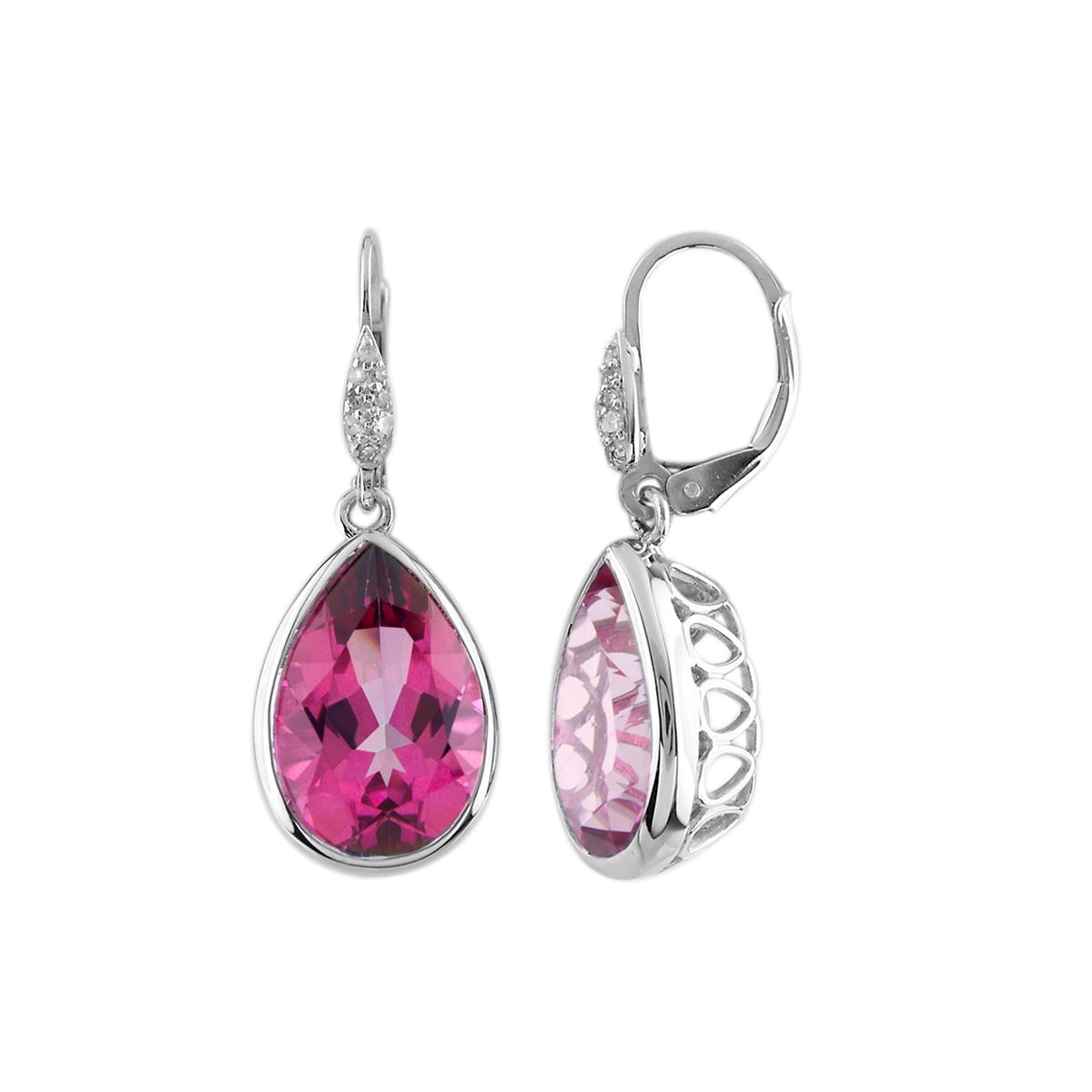 SILVER PS PURE PINK TOPAZ / DIAMOND LEVERBK EARRINGS (#6743PPT) TOTAL CT WEIGHT 12.66