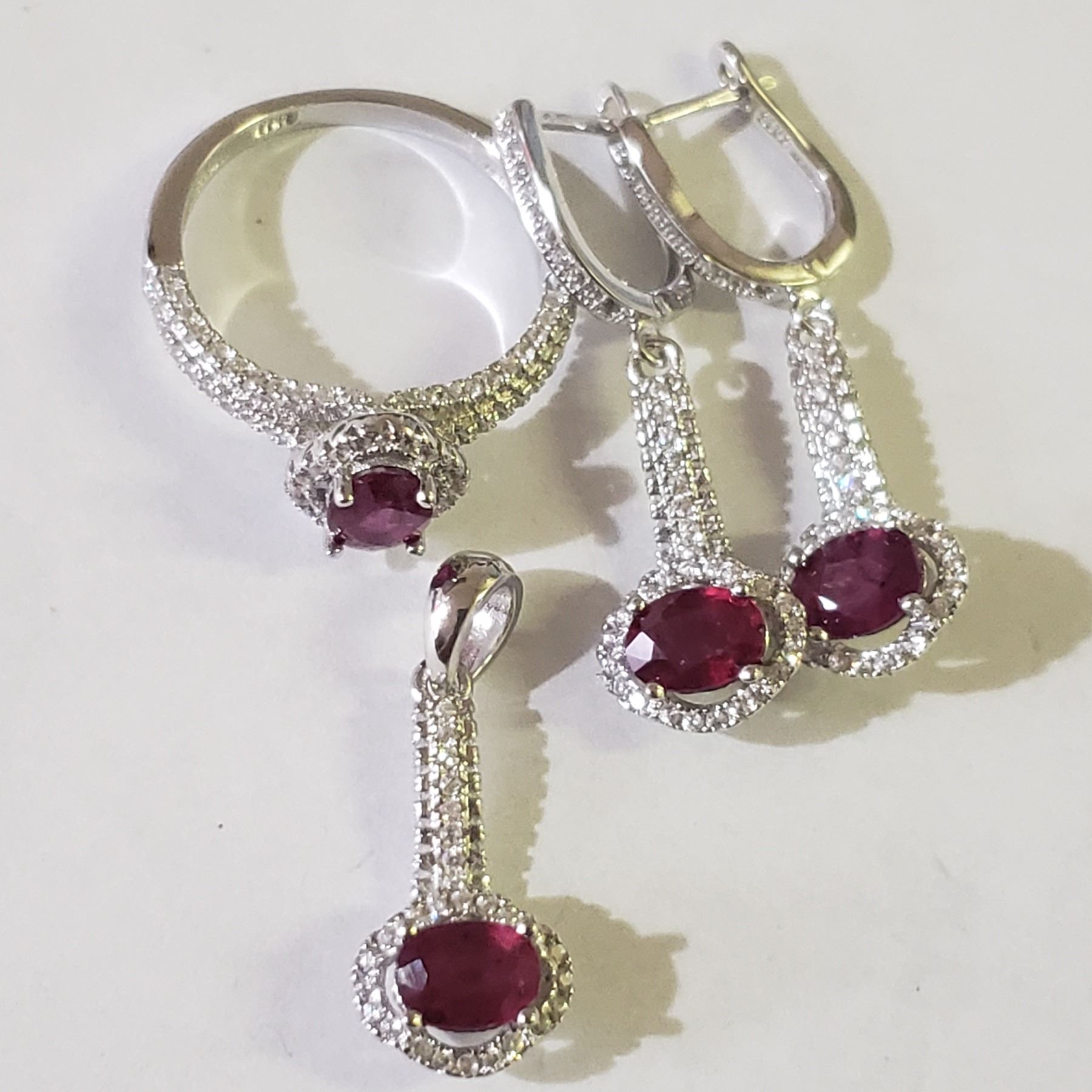 SILVER RHODIUM PLATED RUBY(4CT) EARRING, PENDANT