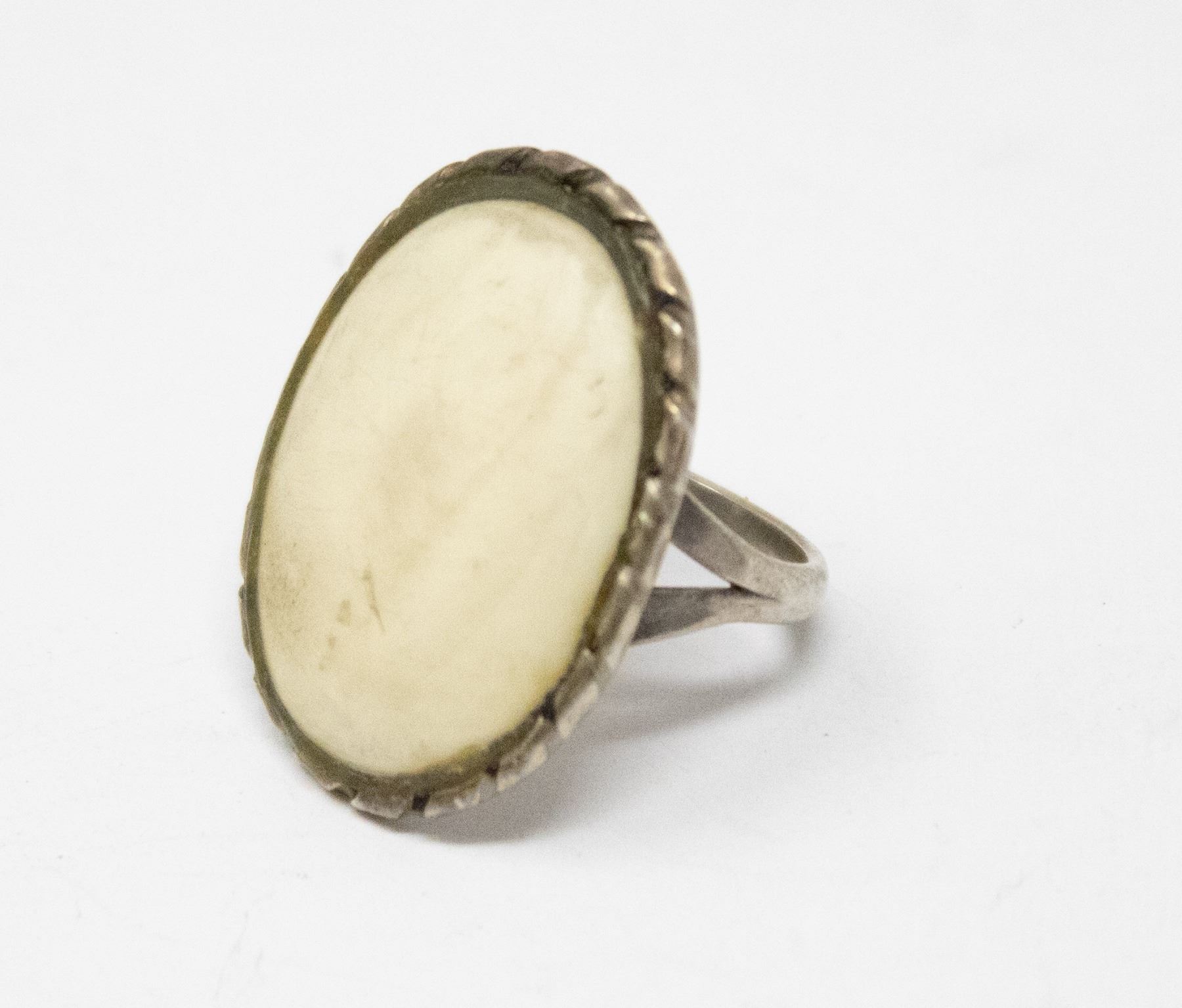 SILVER RING WITH WHITE OVAL INSET DETAIL