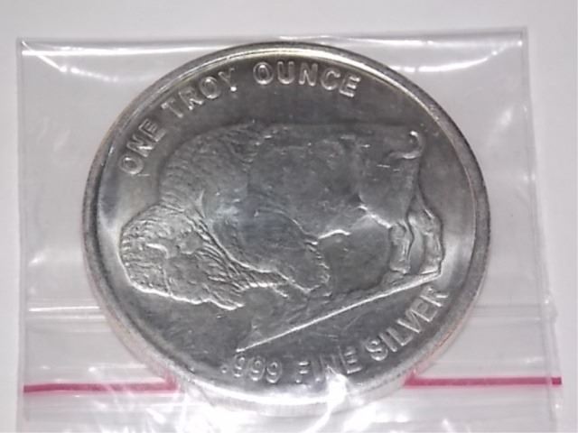 SILVER ROUND - 1 TROY OUNCE .999 FINE SILVER ROUND - AMERICAN BUFFALO/NATIVE THEME - OLDER MINTAGE PIECE