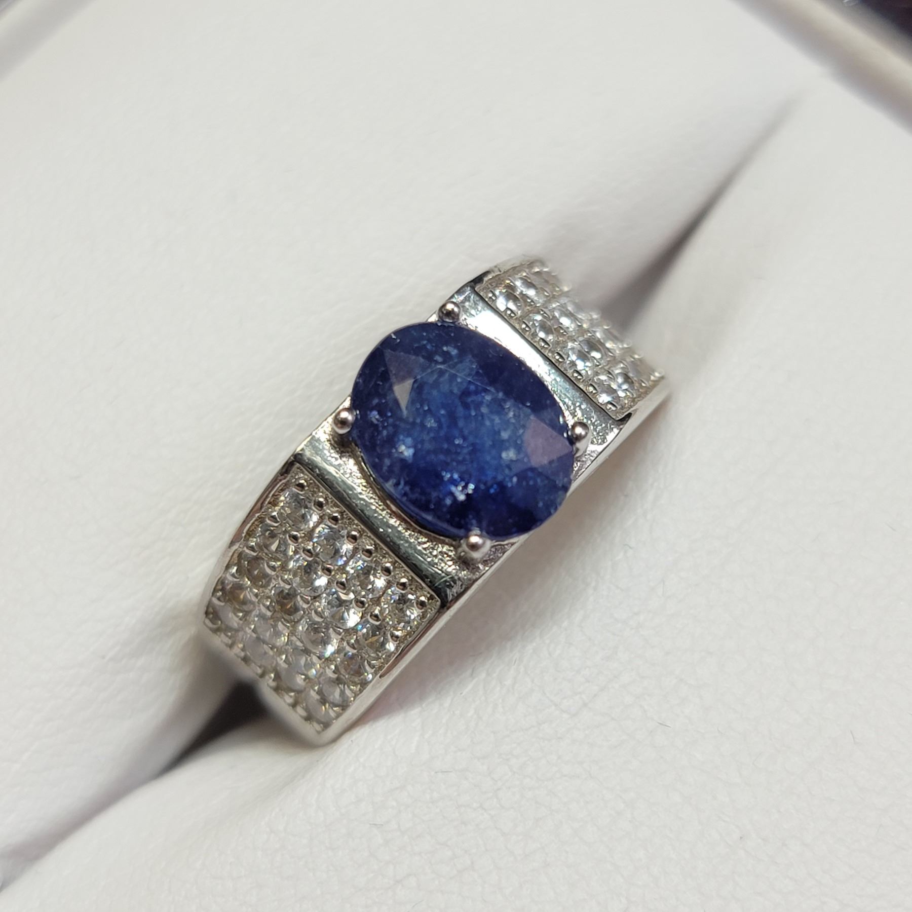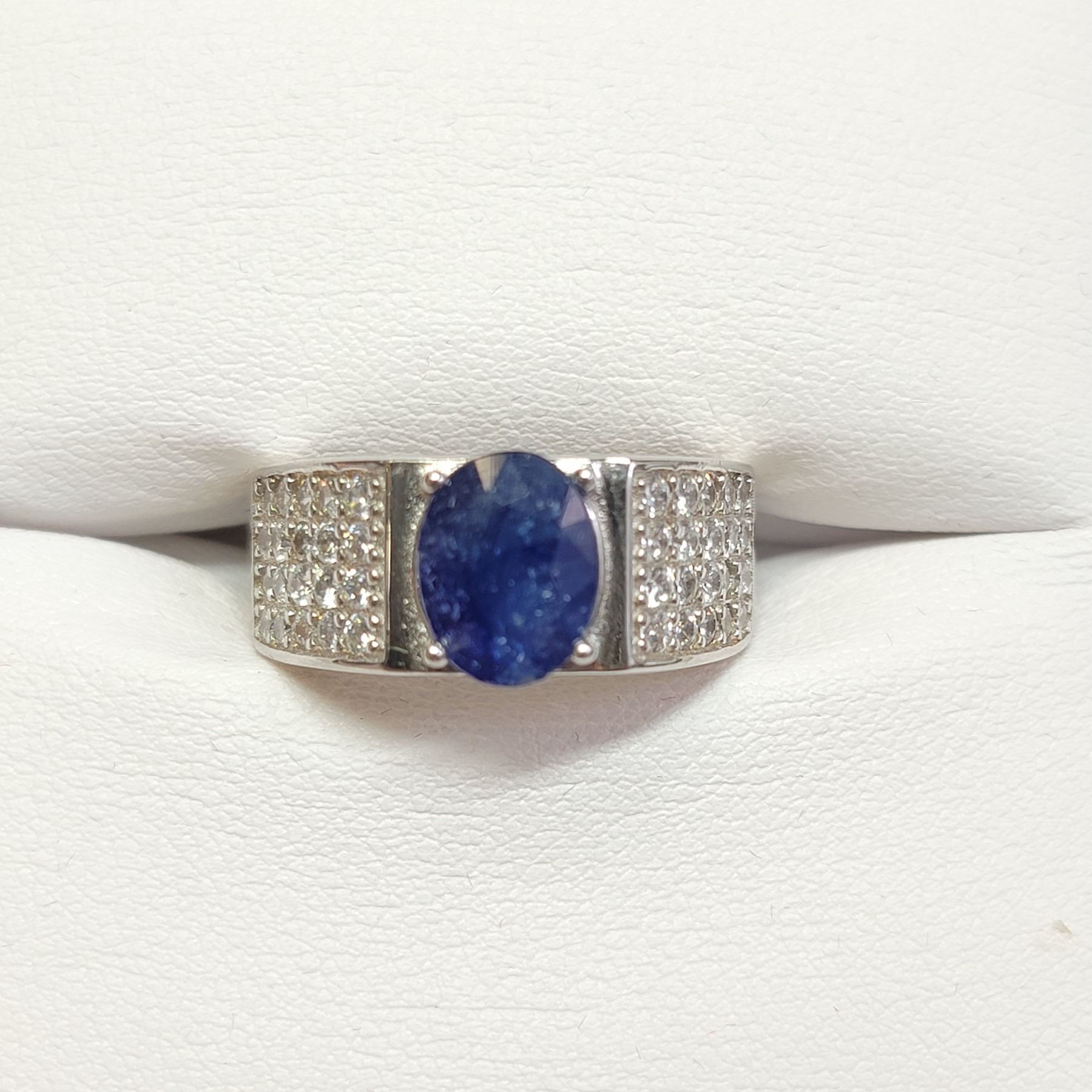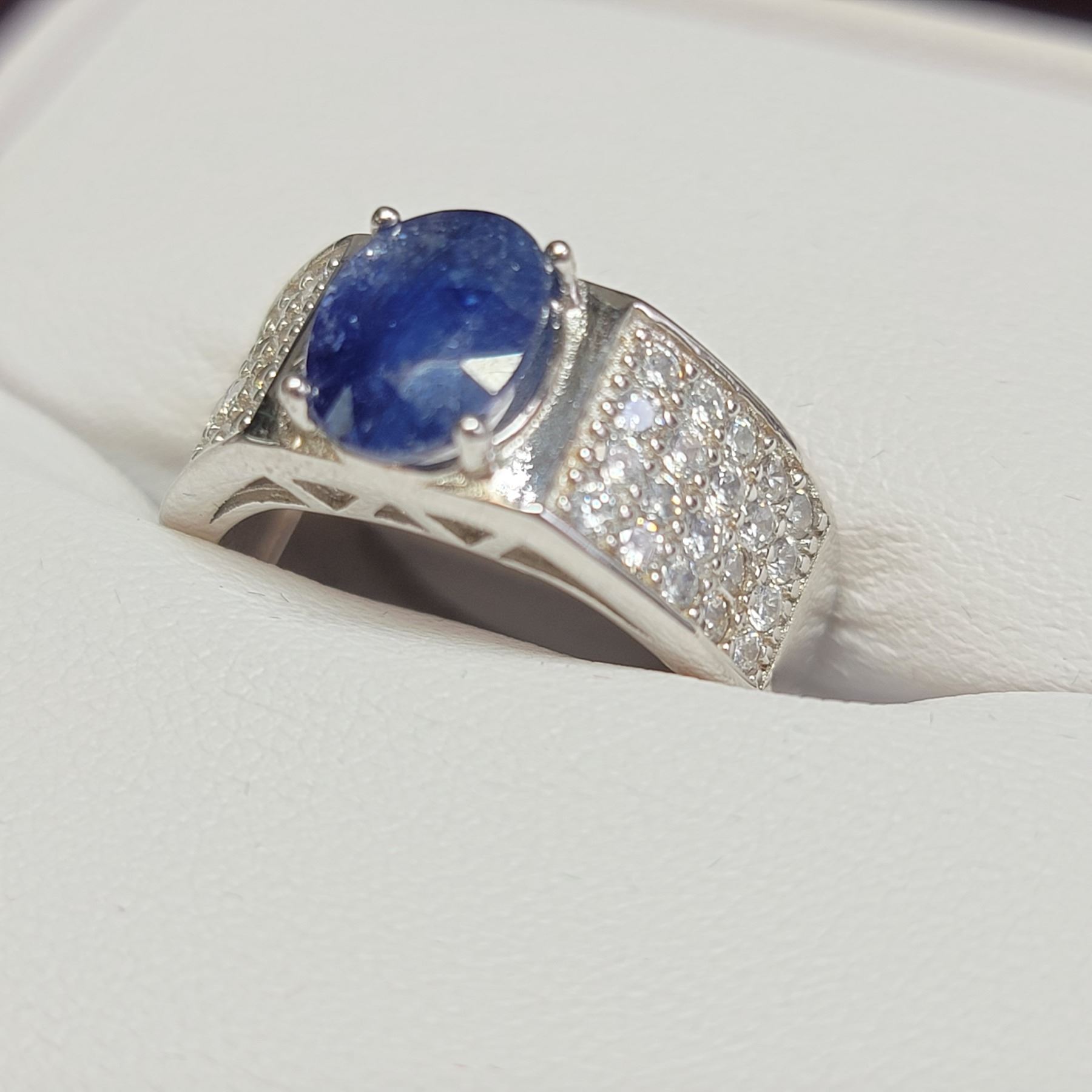 SILVER SAPPHIRE,CZ RING (~SIZE 8)