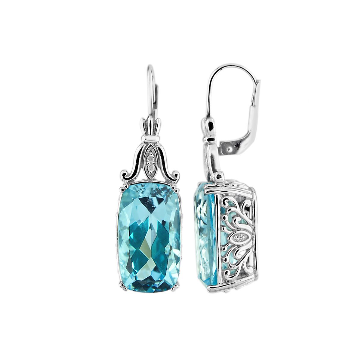 SILVER SKY BLUE TOPAZ / DIAMOND LEVERBACK EARRINGS (#8493SK) TOTAL CT WEIGHT 20.4