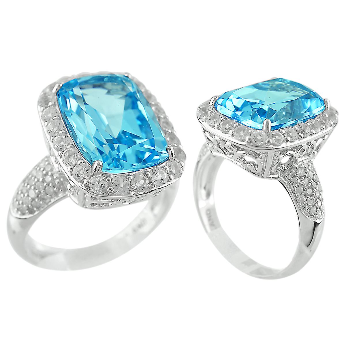 SILVER SKY BLUE TOPAZ / WHITE TOPAZ / DIAMOND RING - Size 7 (#8509MUL1) TOTAL CT WEIGHT 7.56