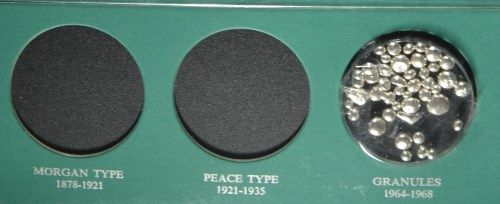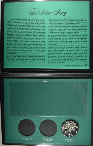 SILVER STORY WITH UNC 1957-A SIL. CERT, 1922 BU SILVER DOLLAR, GRANULES