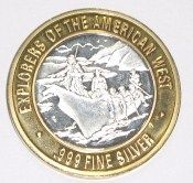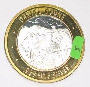 SILVER STRIKE .999 FINE SILVER $10 CASINO GAMING COIN *EXPLORERS OF THE AMERICAN WEST/DANIEL BOONE* COIN WEIGHS 1.34ozs TOTAL WEIGHT AND COIN HAS .60oz OF SILVER!! SILVER COIN CAME OUT OF SAFE BOX!! ***Coin, Currency & All Items Listed in this auction - Grades, Conditions and Values are not Safe Deposit Coins LLC Responsibilty. Grades, Condition and Values are determined by Consigner(s) & Buyers ONLY