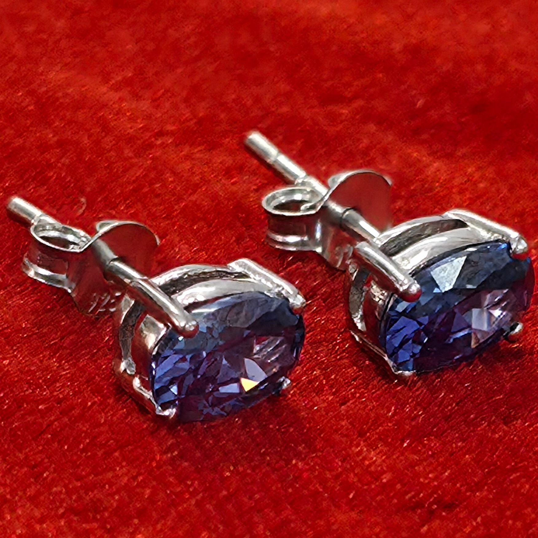 SILVER TANZANITE(1.8CT) RHODIUM PLATED EARRINGS
