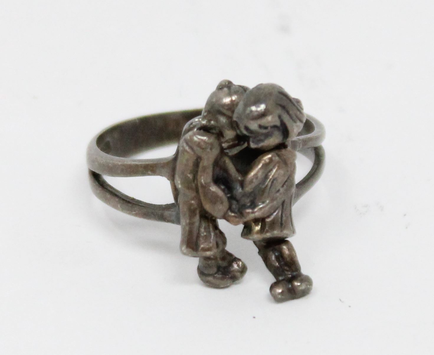 SILVER TONE BOY AND GIRL ARTICULATED RING