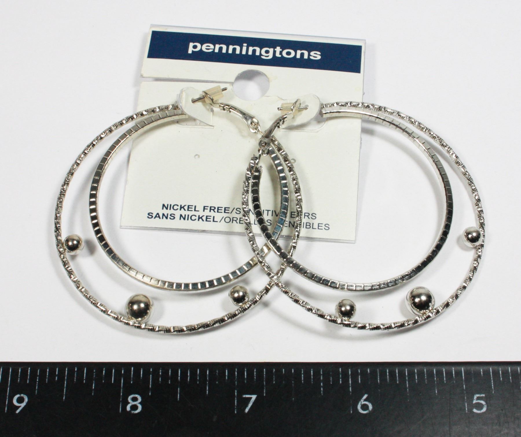 SILVER TONE DOUBLE CIRCLE HOOP EARRINGS