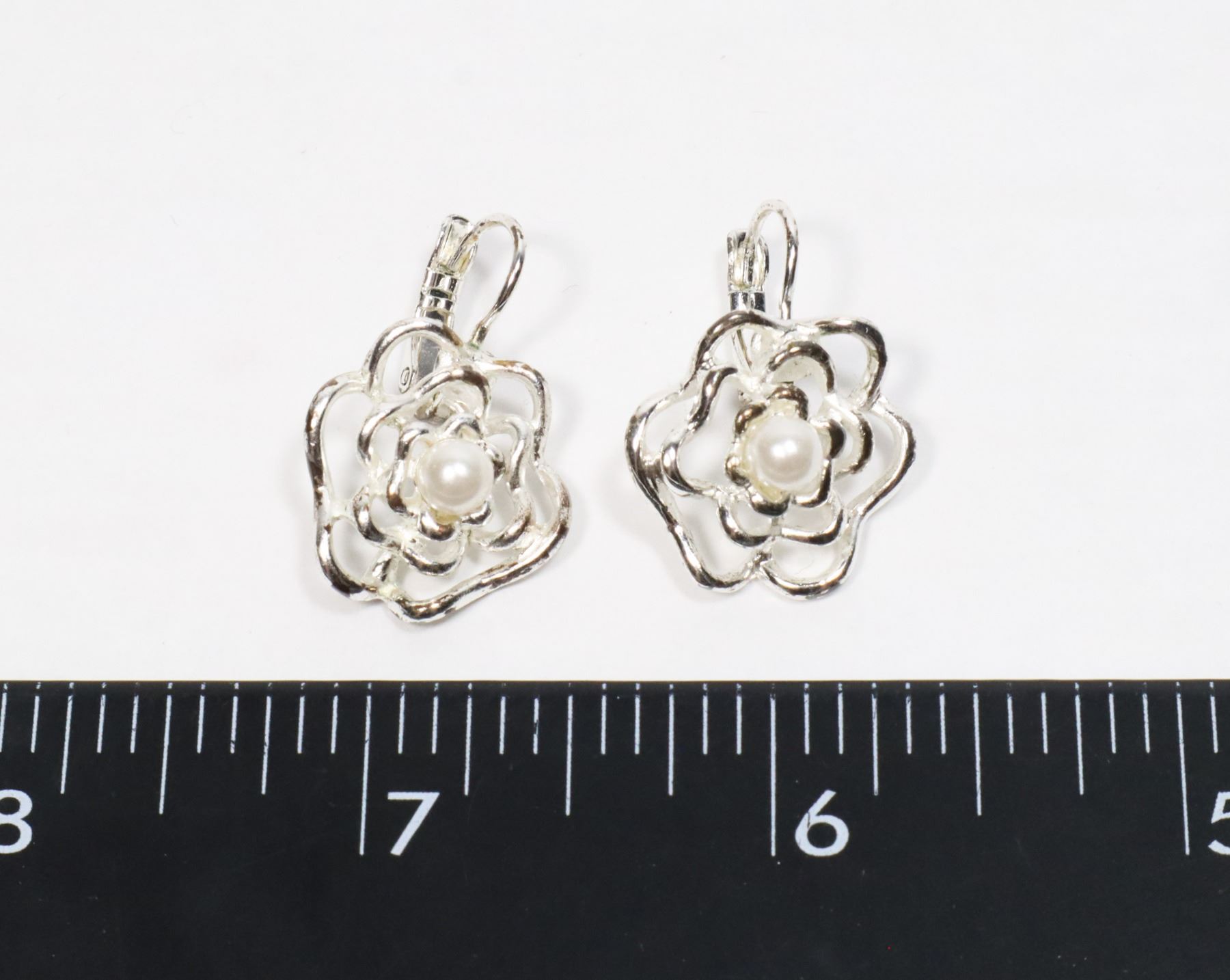 SILVER TONE FLOWER DESIGN FAUX PEARL EARRINGS
