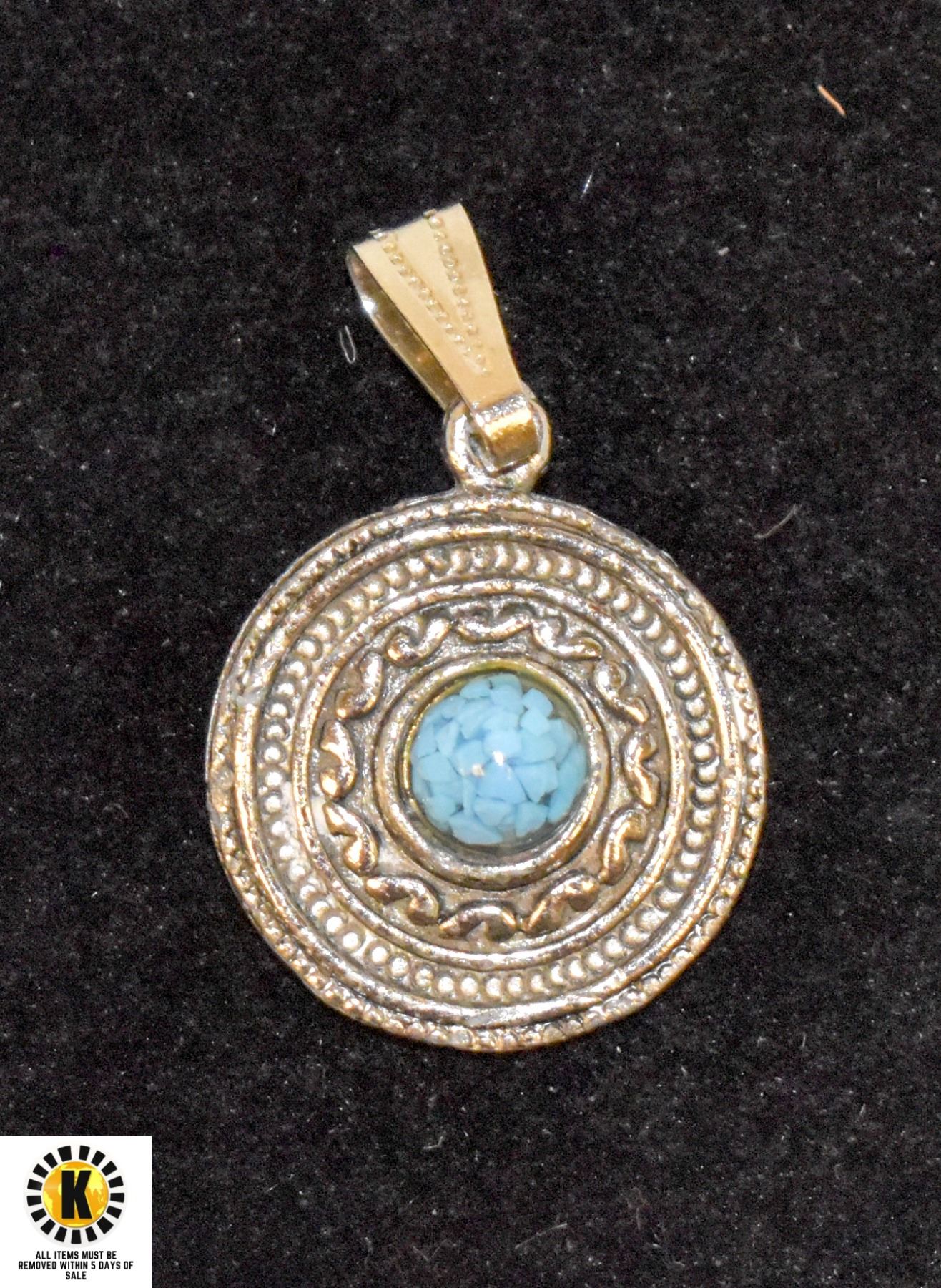 SILVER TONE PENDANT W BLUE STONE