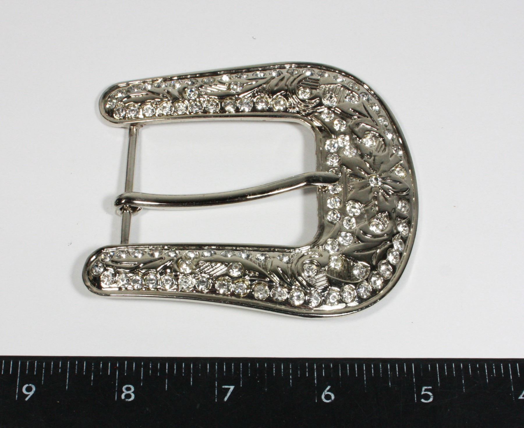 SILVER TONE RHINESTONE REPLACEMENT BELT BUCKLE