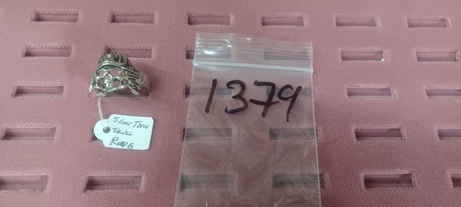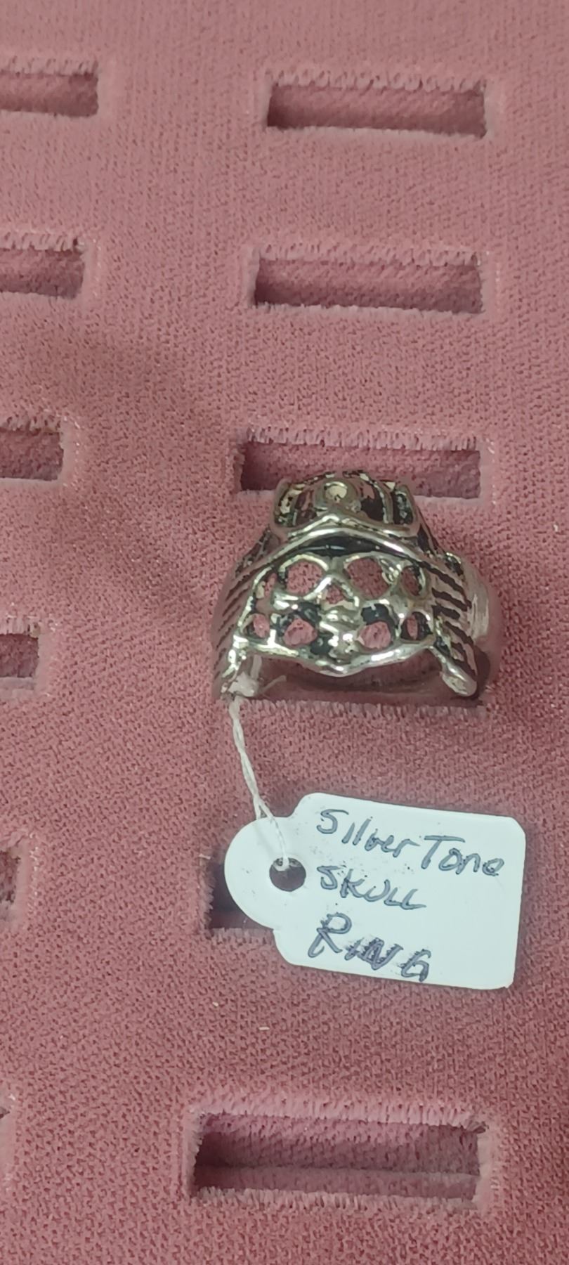 SILVER TONE SKULL RING, LARGE 7/8 INCH FINGER SIZE
