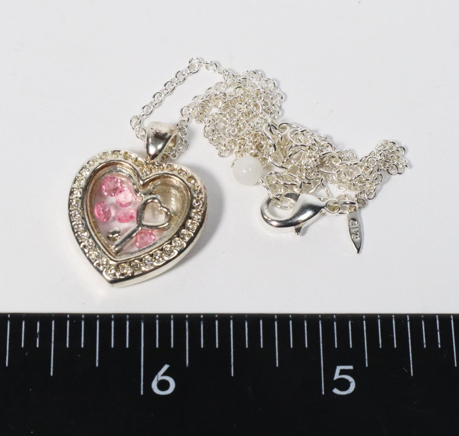 STERLING SILVER) CHAIN WITH RHINESTONE HEARTS A FLUTTER PENDANT