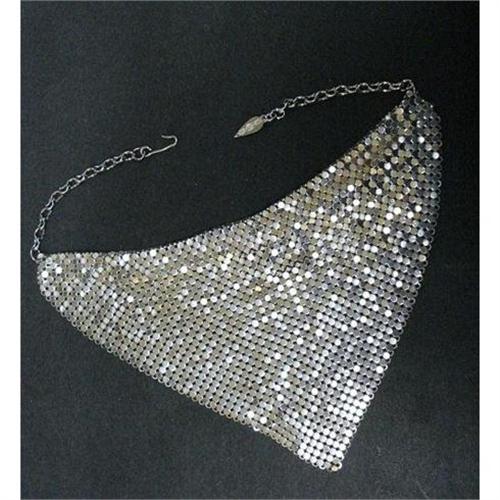 UNPARAREL BEAUTY, WHITING&DAVIS MESH BIB STYLE NECKLACE, IT IS FINISHED IN SILVER TONE AND IN EXCELLENT CONDITION, measures about 14" around the neck,and 4 1/2" long. US Buyer to pay 5.00 for shipping plus insurance.THANKS.