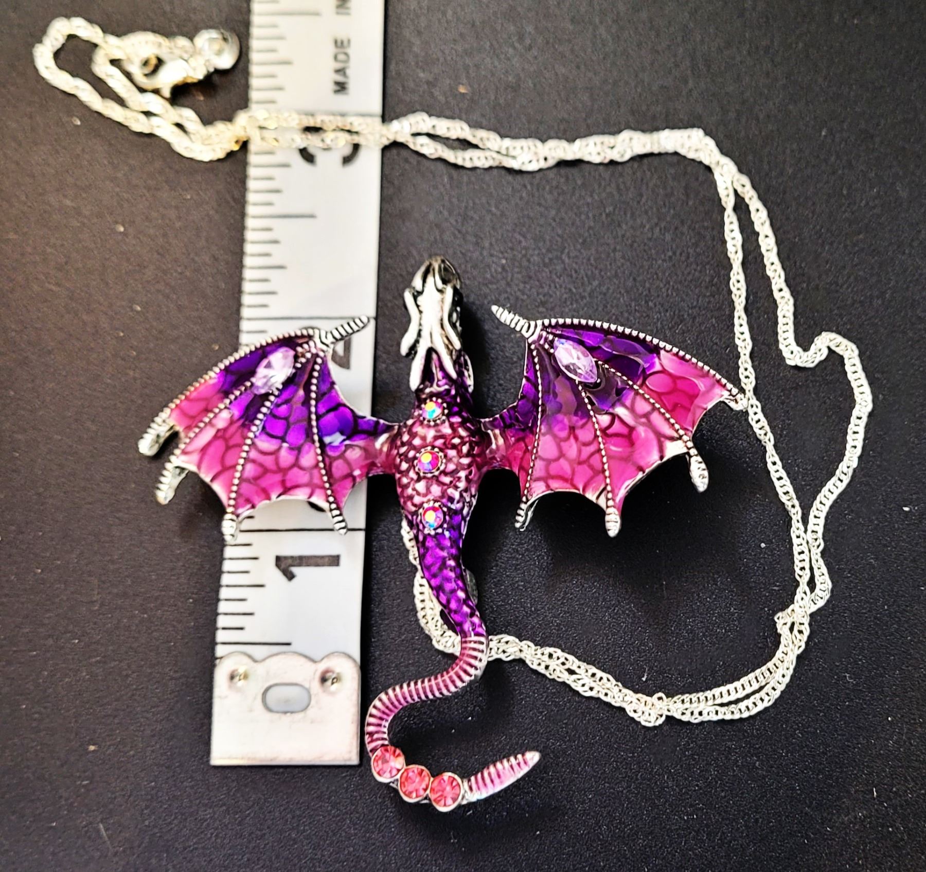 DRAGON BROOCH/PENDANT ON 22" WAVE CHAIN. JEWELLERY