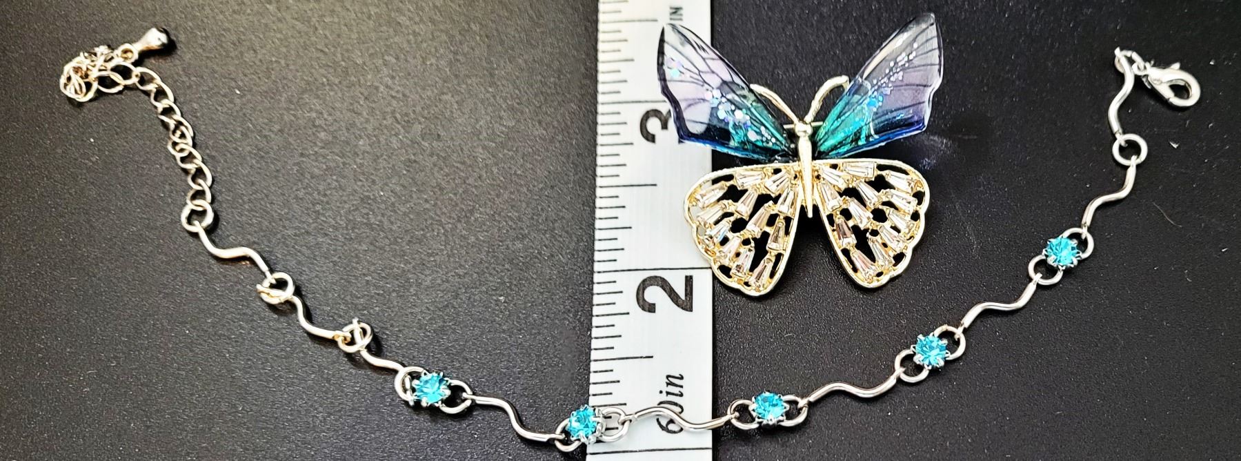 BUTTERFLY BROOCH AND COORDINATING BRACELET. JEWELLERY