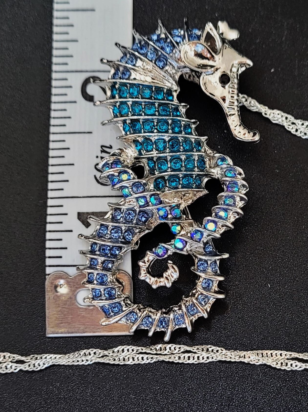 SEAHORSE BROOCH/PENDANT ON 22" WAVE CHAIN. JEWELLERY
