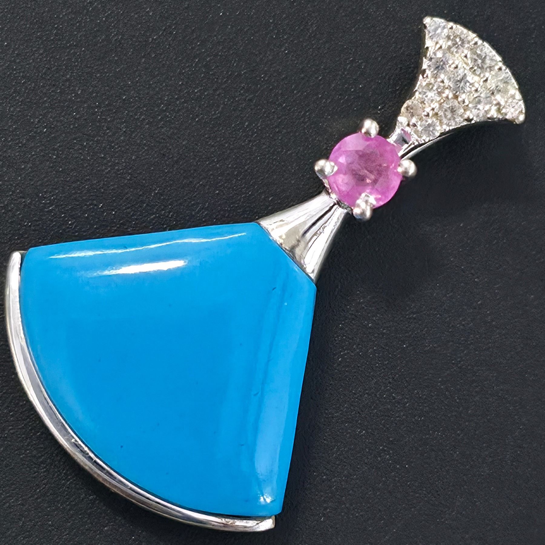 SILVER TOURMALINE SYN. TURQUOISE(3.6CT) RHODIUM