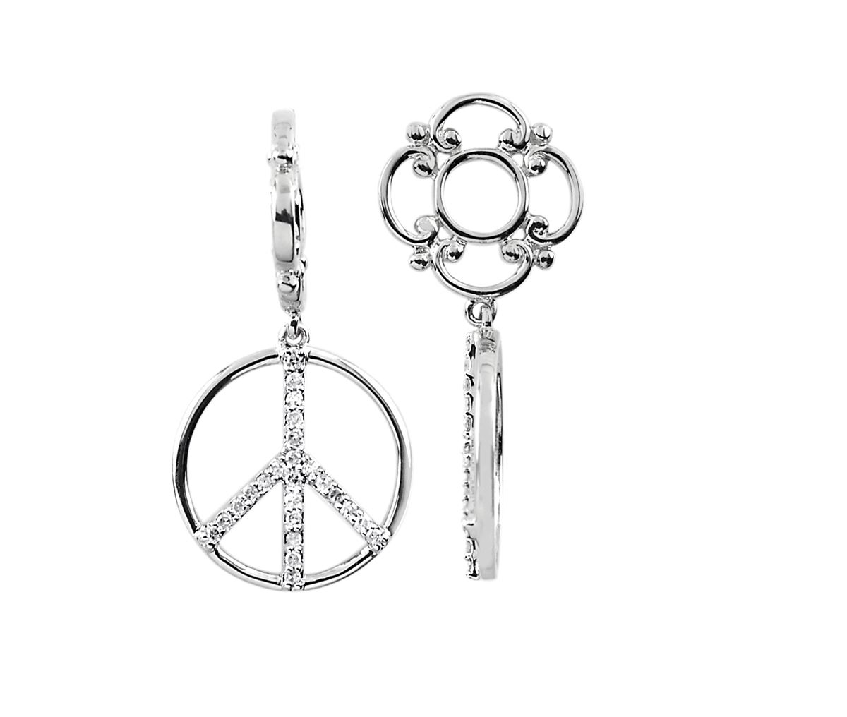 SILVER WHEEL W/SILVER DIAMOND PEACE SIGN DANGLE (#363D) TOTAL CT WEIGHT